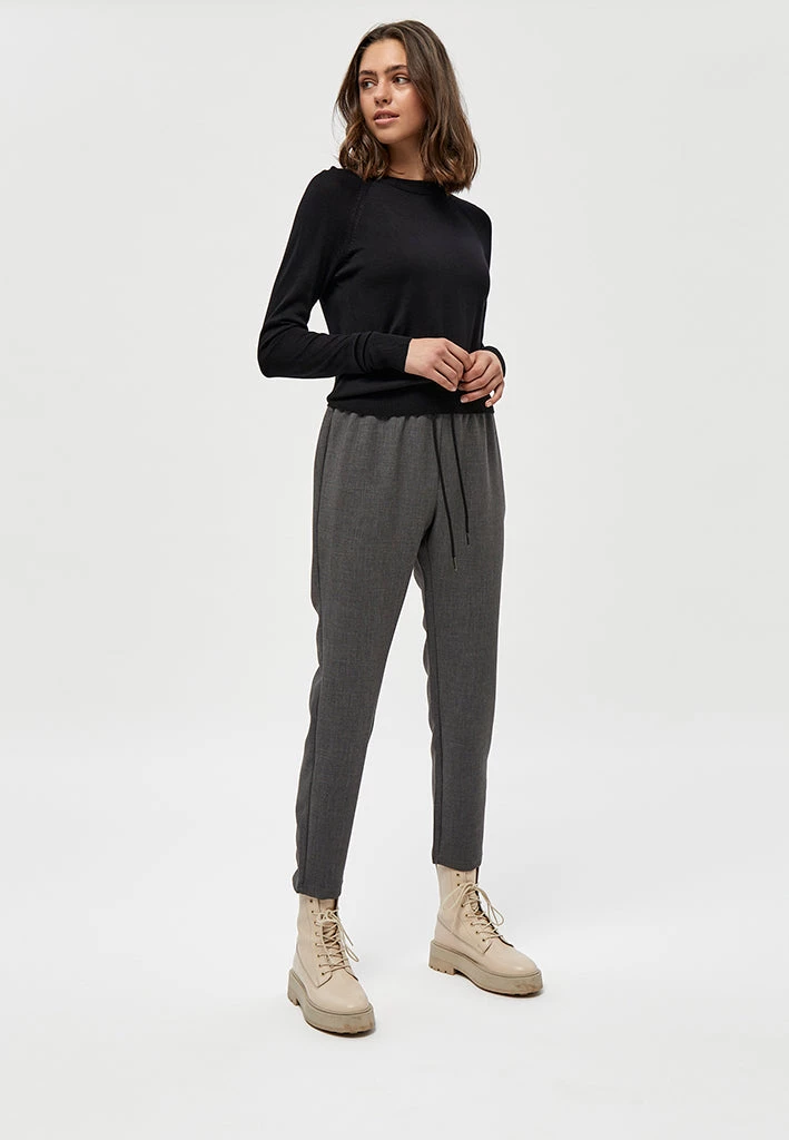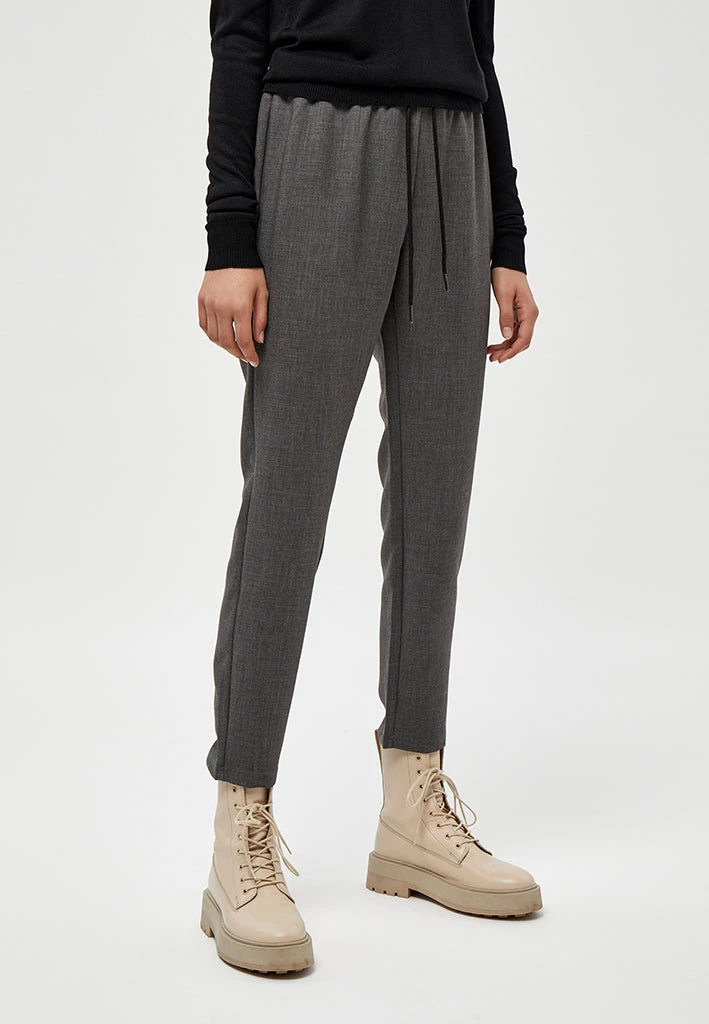 Casual pants with drawstring at the waist. The pants have a relaxed fit and are stretchy.