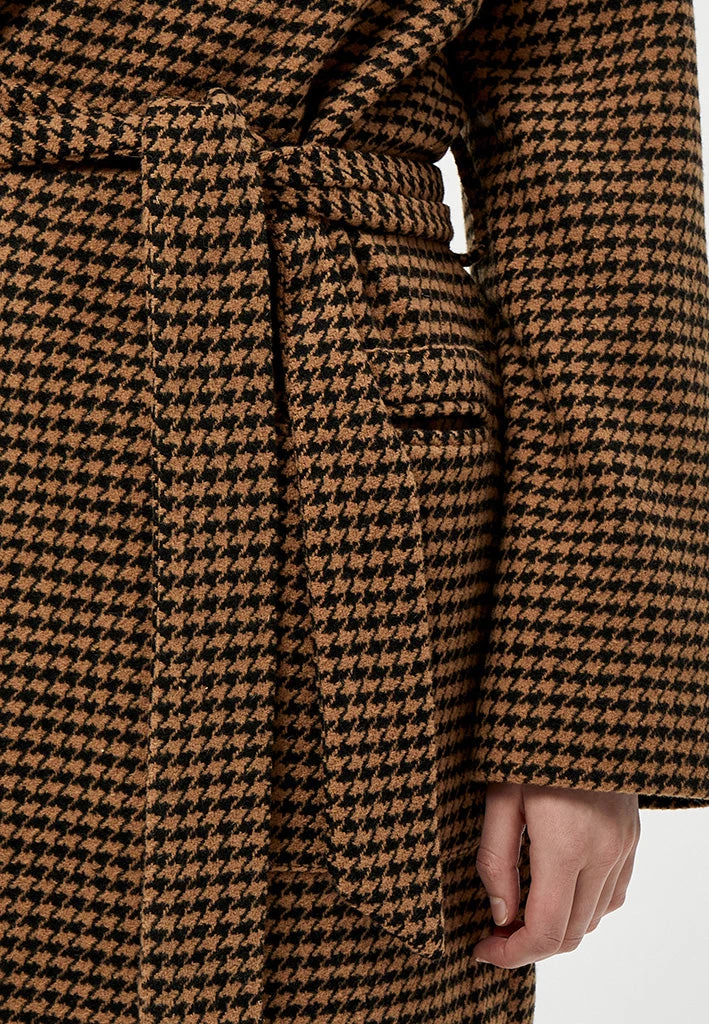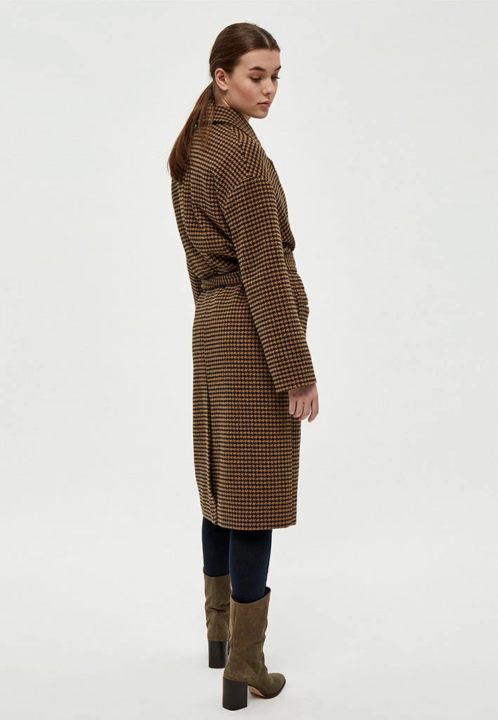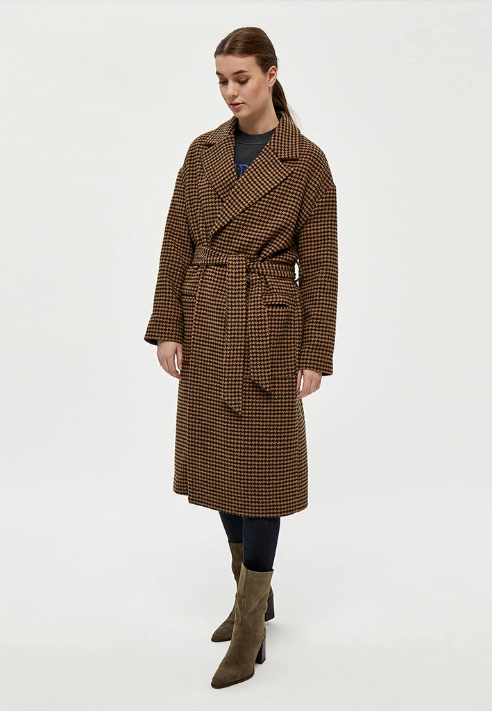 Lovely jacket with a cool print. The jacket is long. It has a big collar and a belt to tie at the waist.