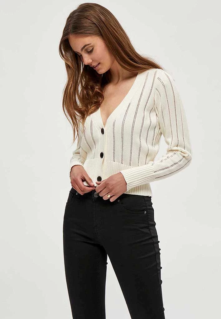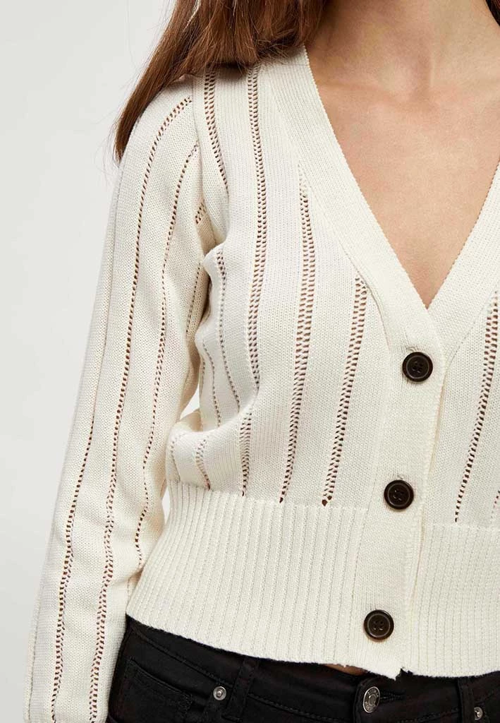 Lovely knit cardigan. It is closed by buttons and has a v-neck. The cardigan has a lovely pattern and wide rib edges.