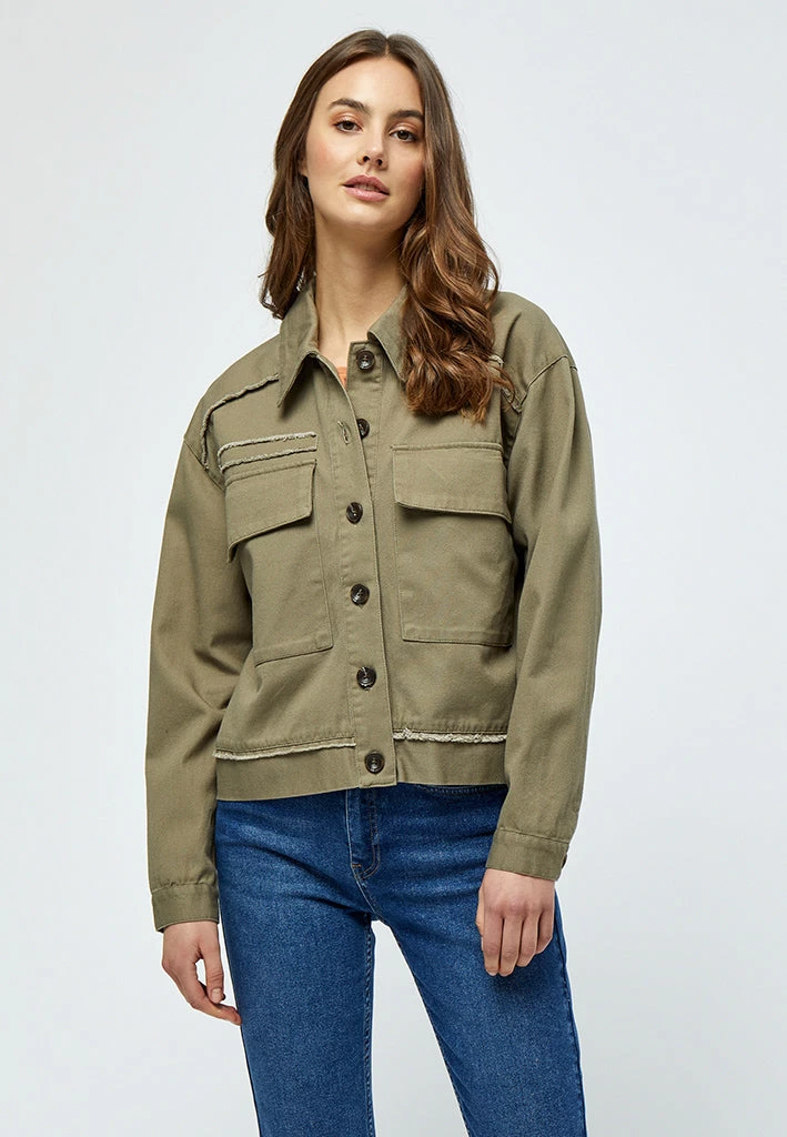 Cool jacket with raw details. The jacket is perfect for spring and is easy to style.