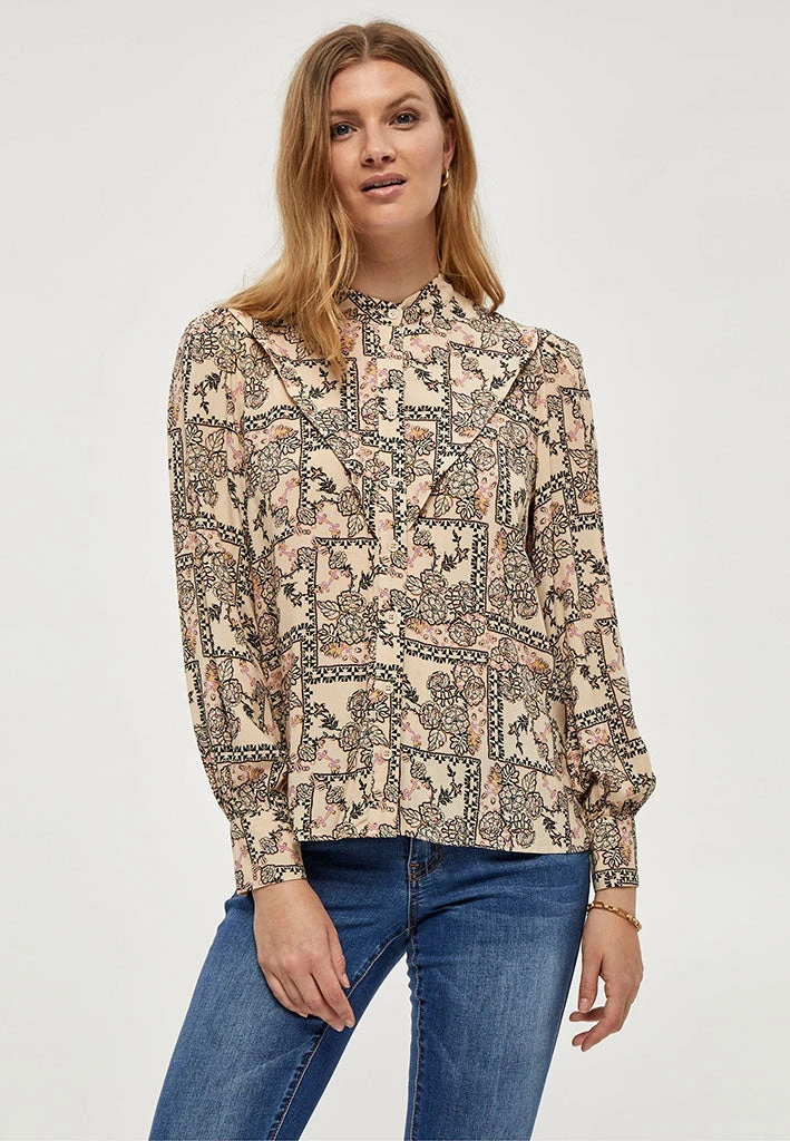 Lovely shirt with detail above the chest. The shirt has long sleeves and button closure.