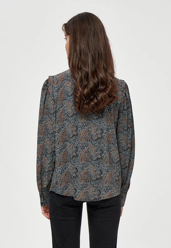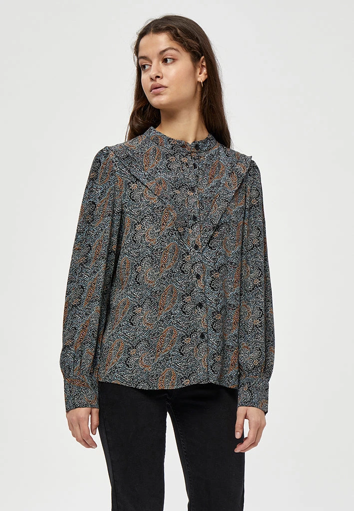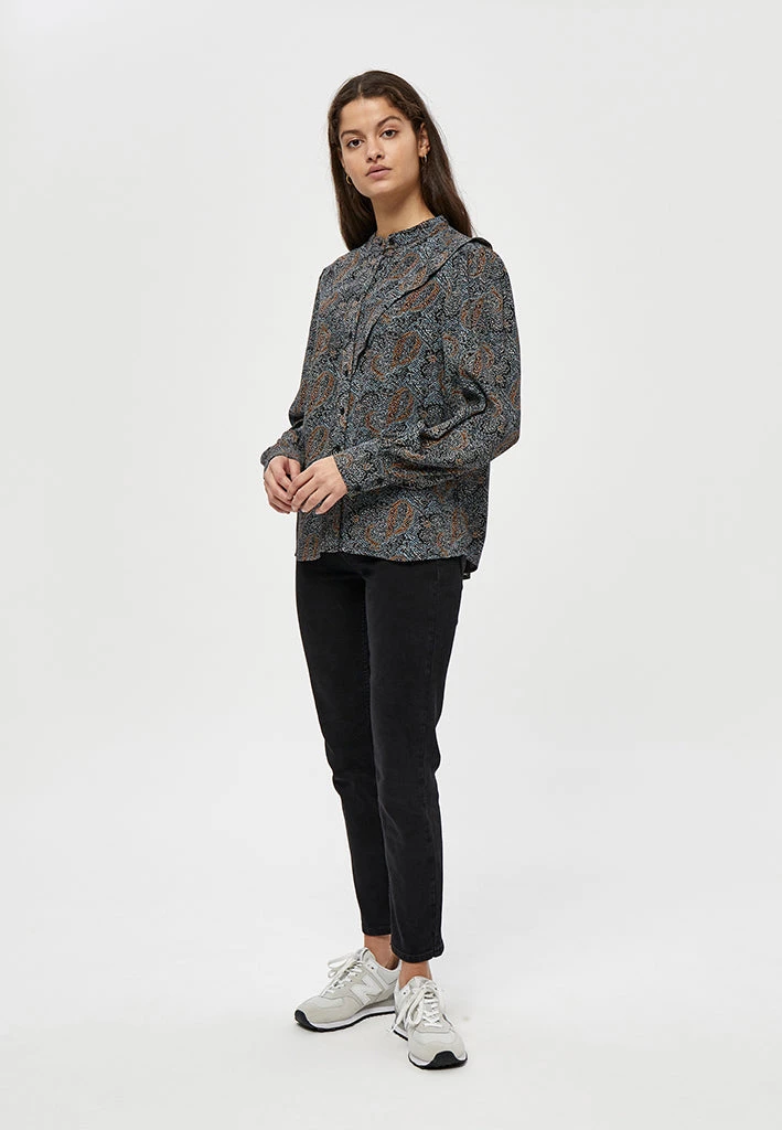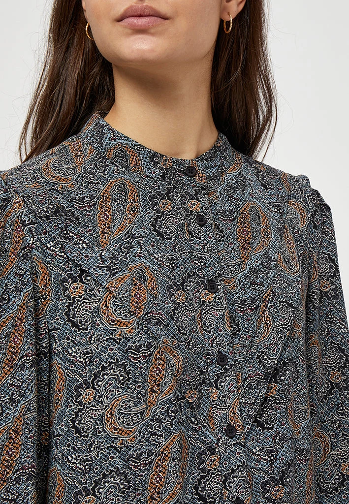 Lovely shirt with detail above the chest. The shirt has long sleeves and button closure.
