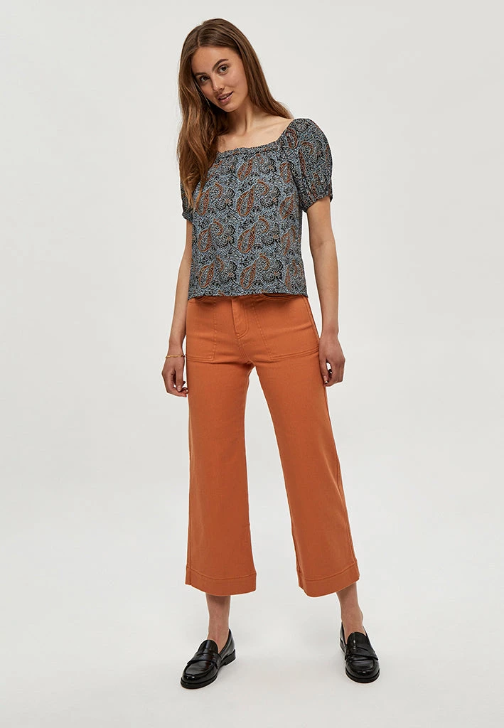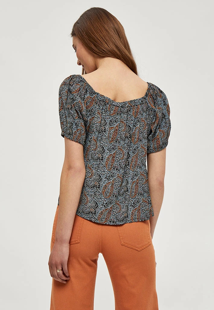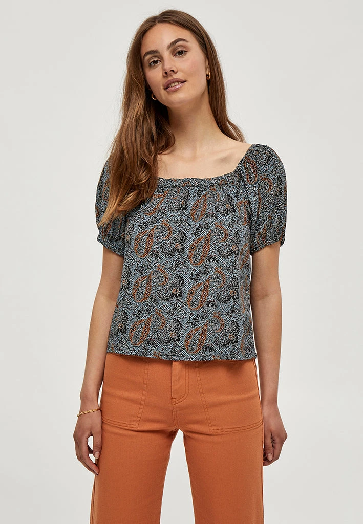 Beautiful top with print. The top has short sleeves. It is easy to style for a nice spring look.