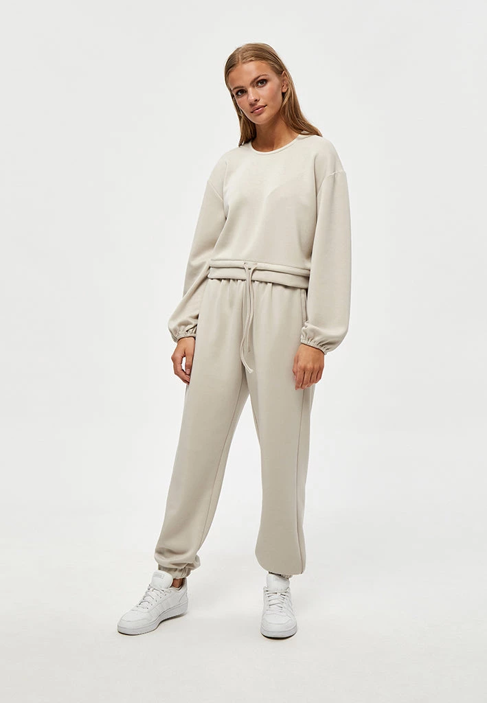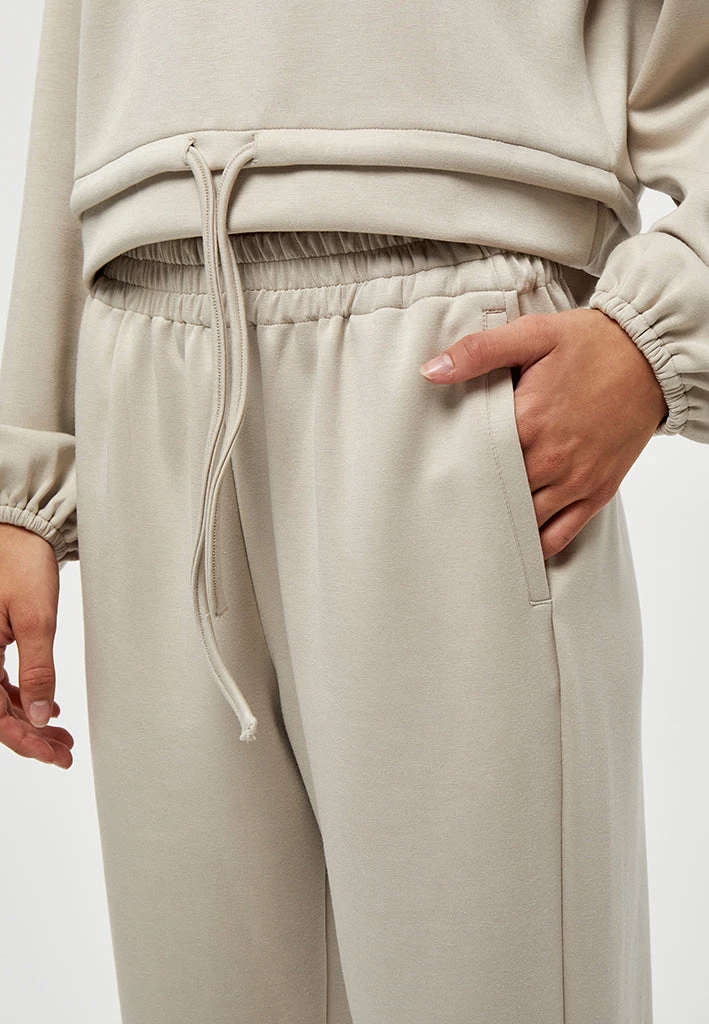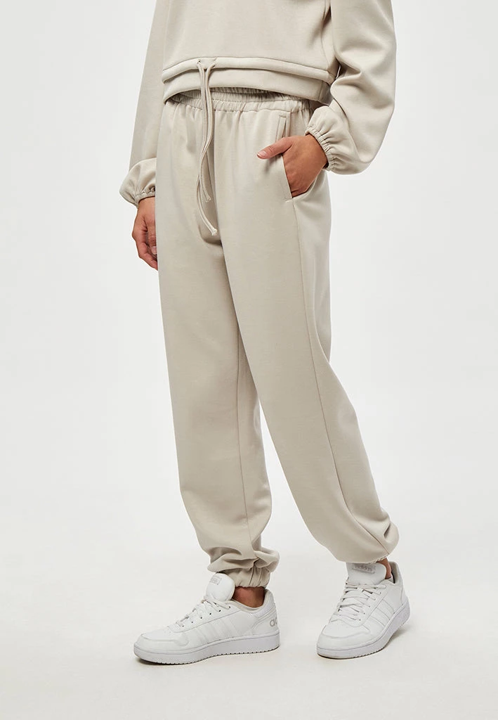 Cool sweatpants with side pockets. The sweatpants are elastic at the waist and at the bottom by the ankles.