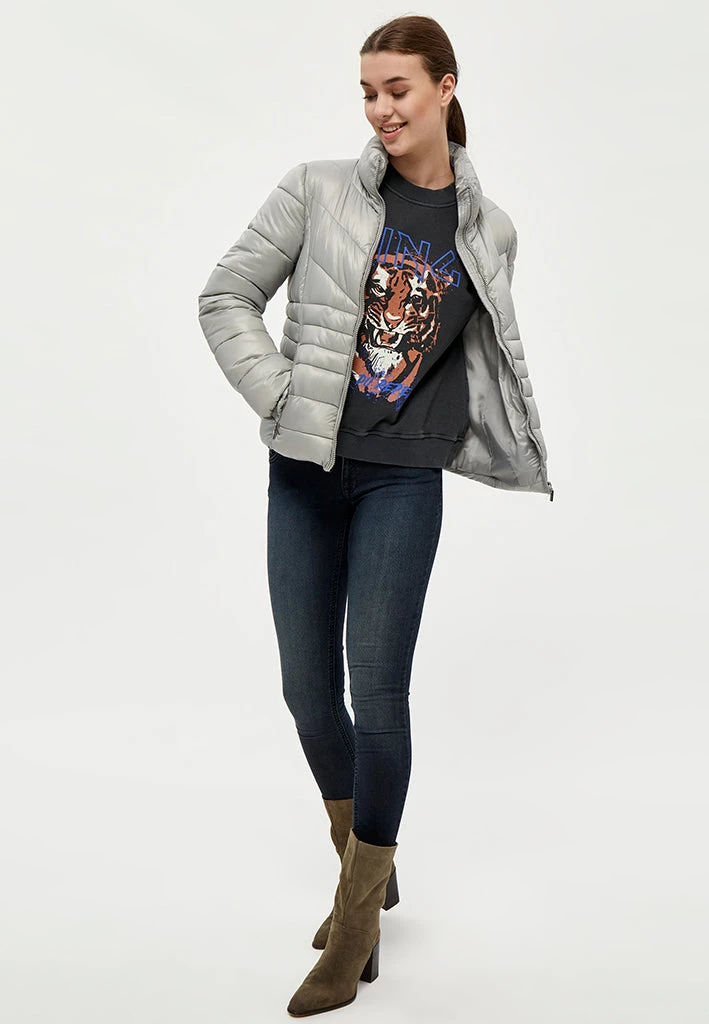 Lovely and comfortable jacket for autumn. The jacket has a high neck and side pockets. The pockets and the jacket is closed by zipper.