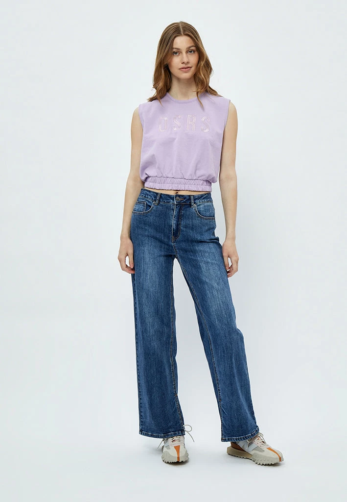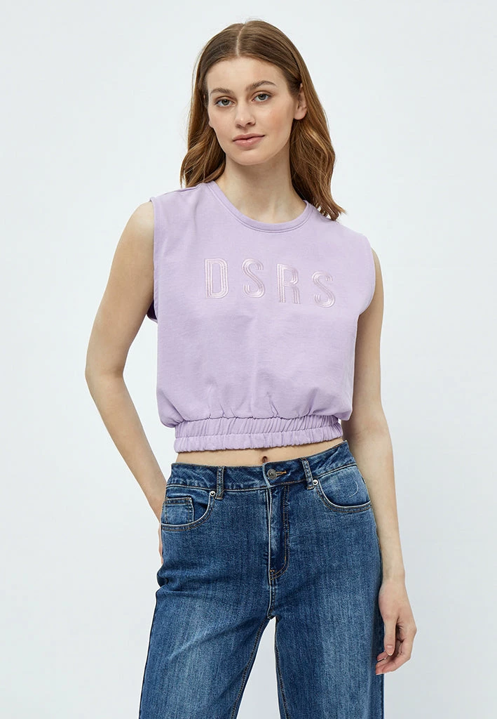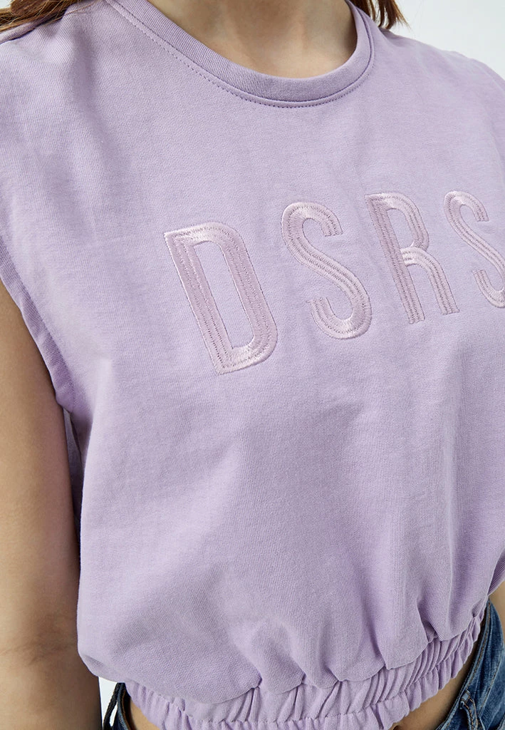 Cool sleeve less tank top with a wide rib on the buttom. It has a round neck and logo on the front.