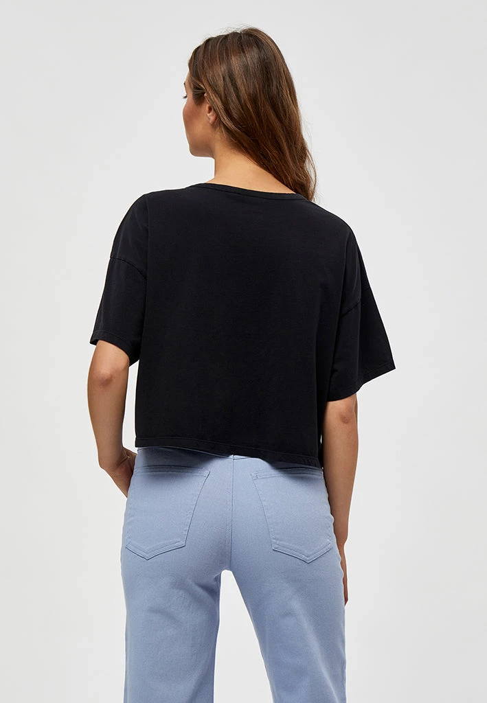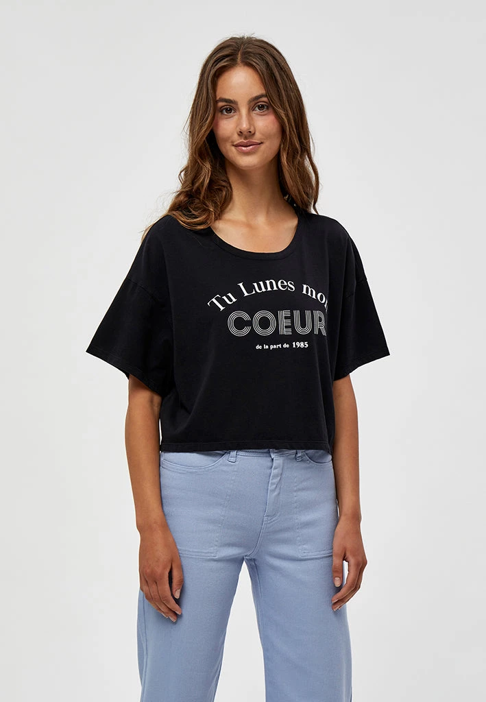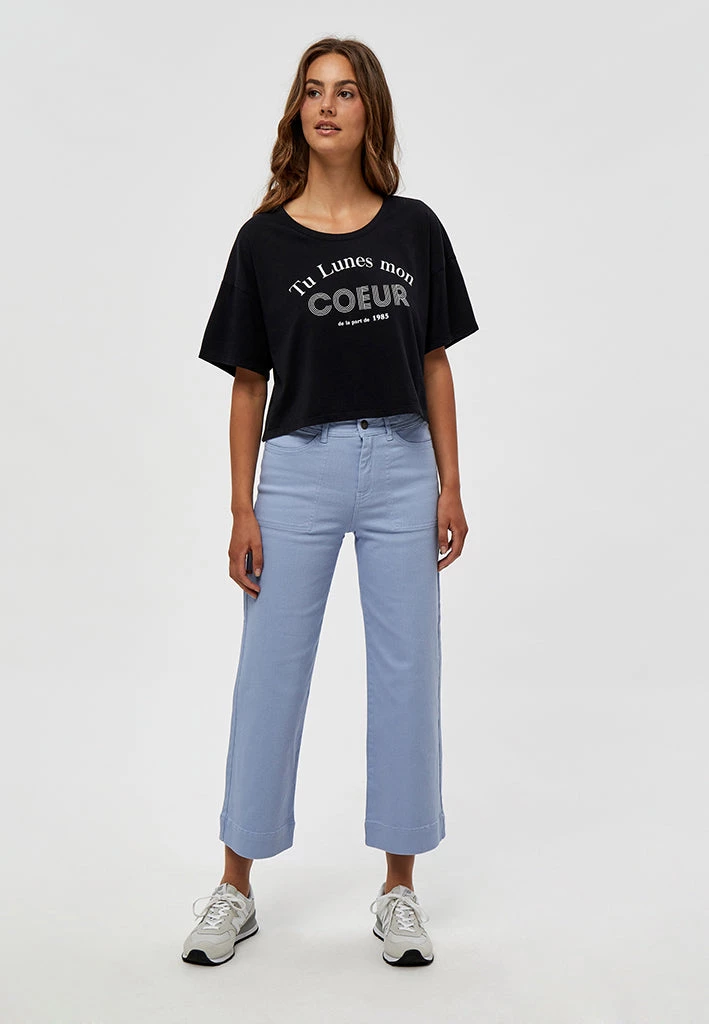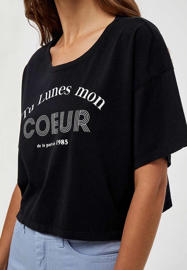 The Jala Tee has a cool boxy fit with a scoop neck and a nice print on the front. Pair it with Jasmin Denim Shorts for a cool laidback look.