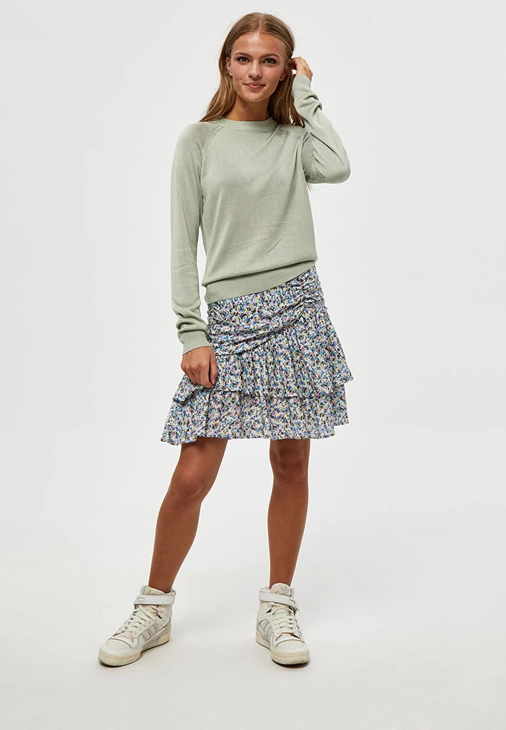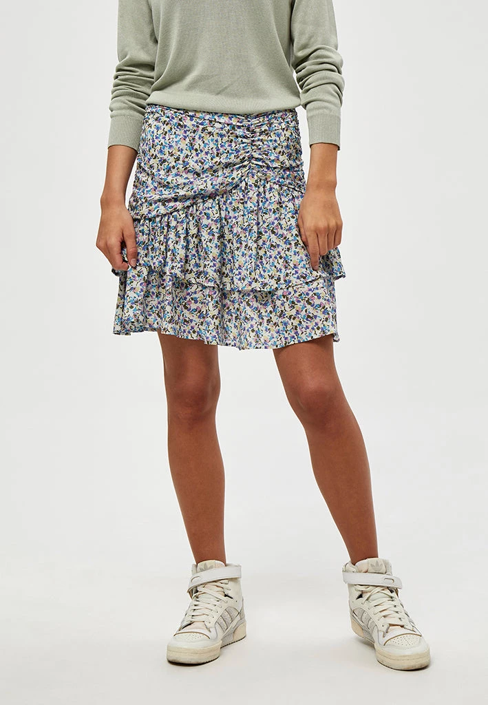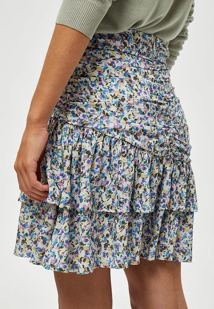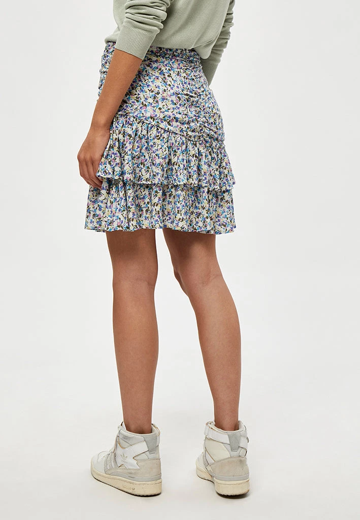 The perfect skirt with draping effect as well as ruffles on the buttom. It has a beautiful flowerprint which makes it perfect for summer. It is made from 100% sustainable materials.