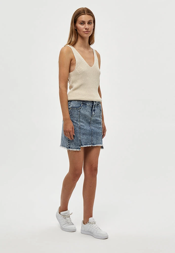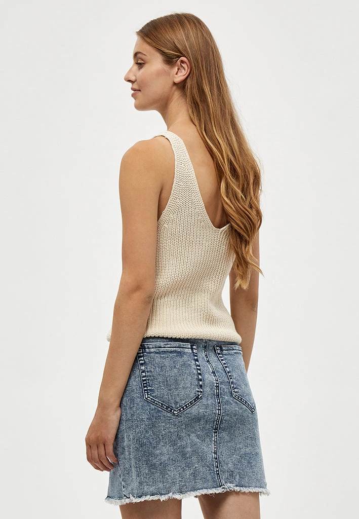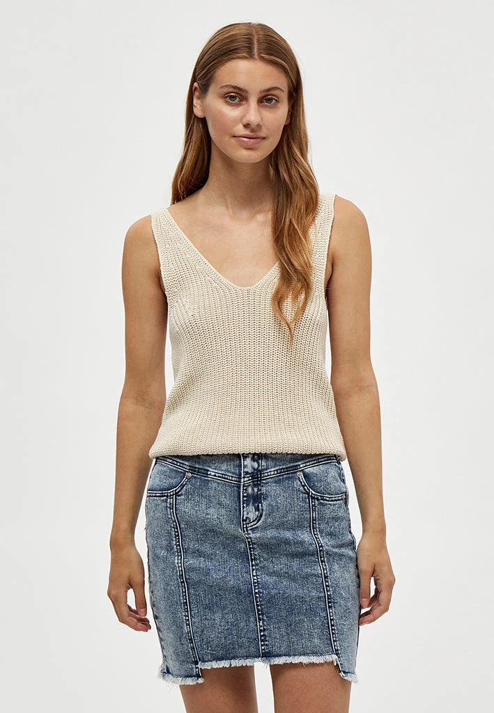 The top is a beautiful and soft knit with a deep v-neck. The material is 100% organic cotton and therefor sustainable.