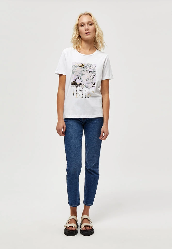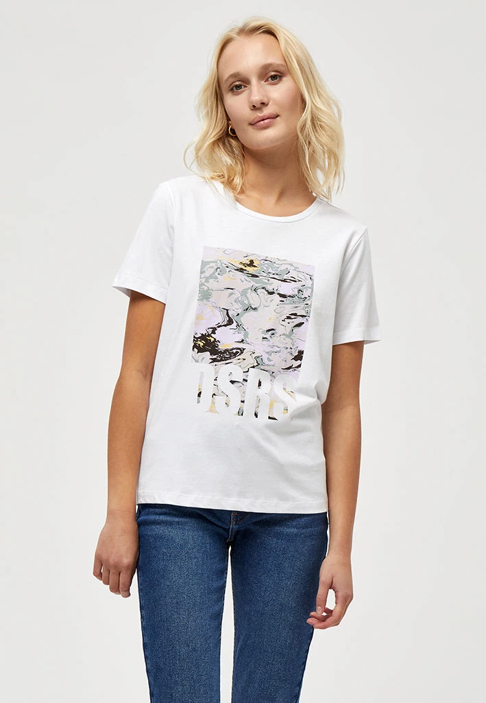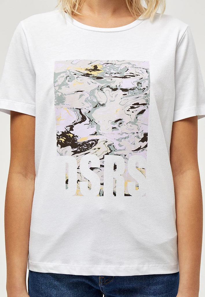 Jenelle Tee is your perfect everyday tee. It has a round neckline and a cool marble print.