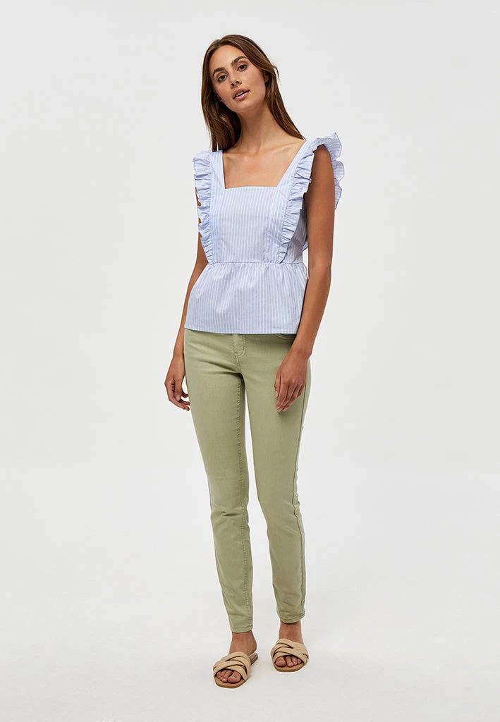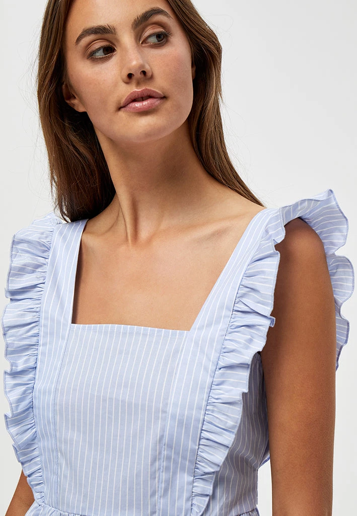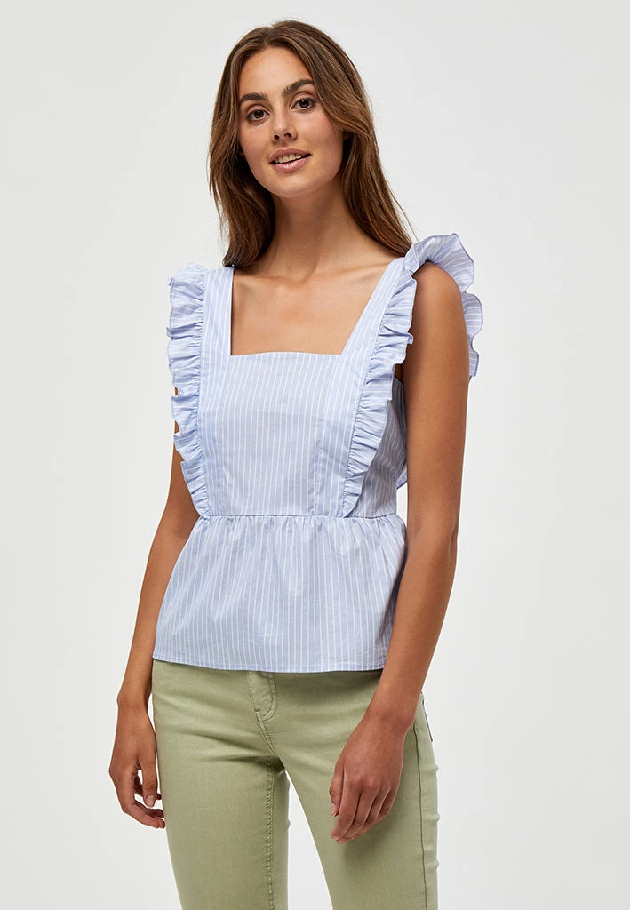 A perfect spring and summer top. The Jetta Top comes with a square neck, an open back with a bow and ruffle details on the sides.