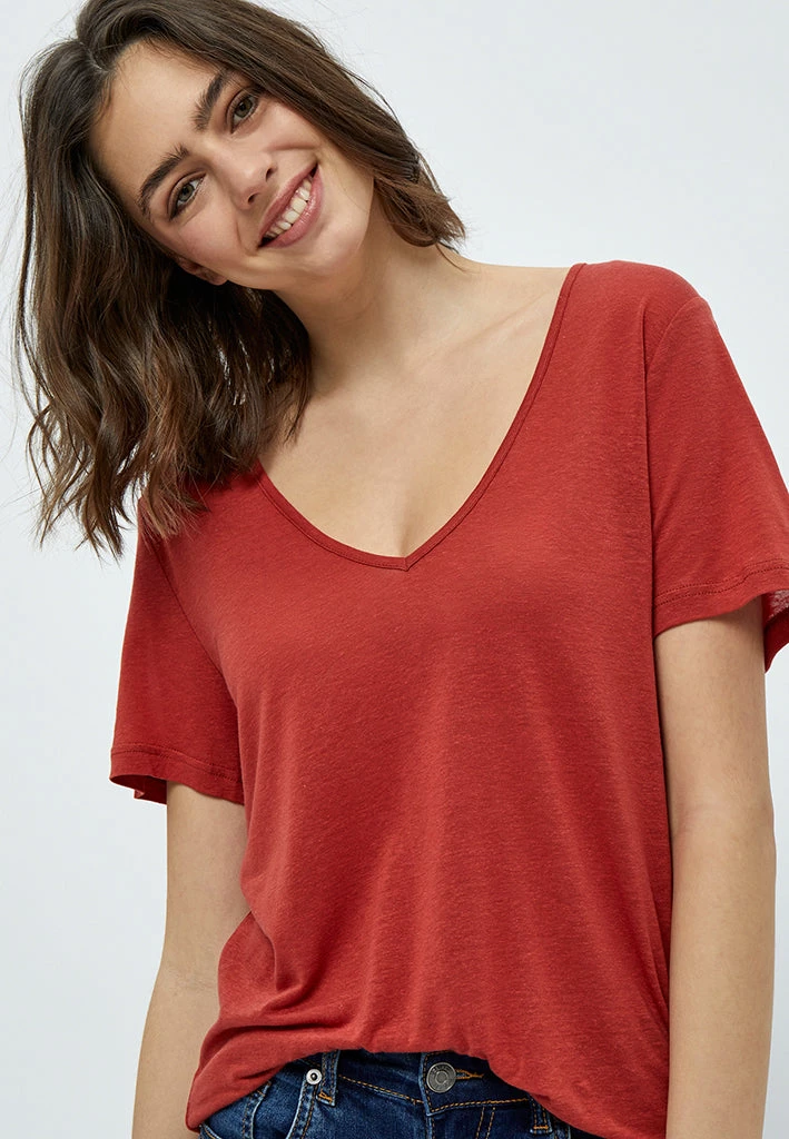 The perfect everyday tee. It has a beautiful v-neck and goes to every outfit in your wardrobe. It is made from 70% Tencel which makes it a sustainable choice.