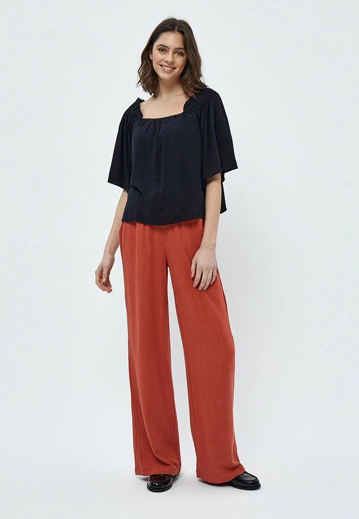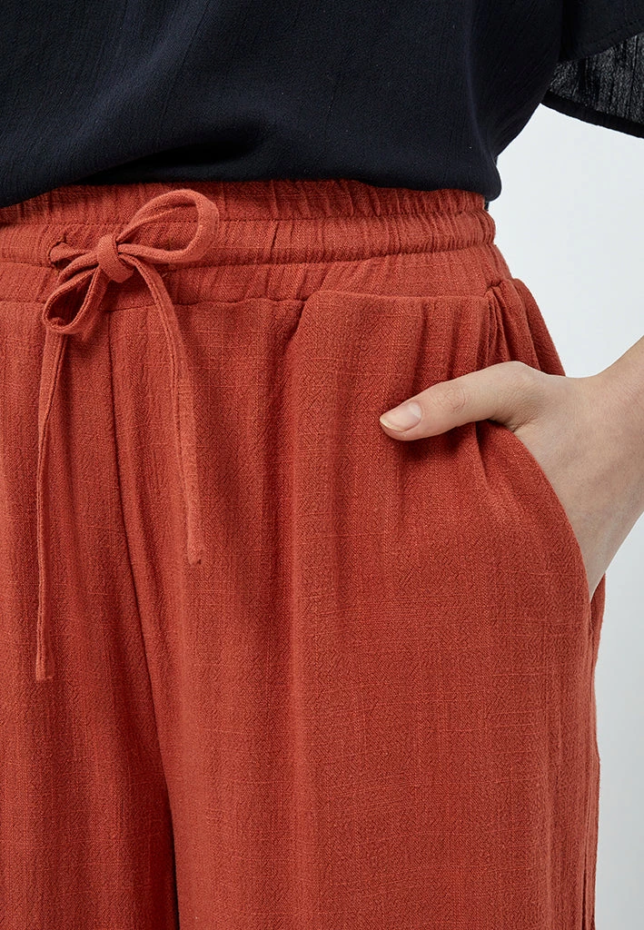 Lovely linen pants. The pants have side pockets and drawstrings in the waist. They are easy to style. A must have in everyones wardrobe.