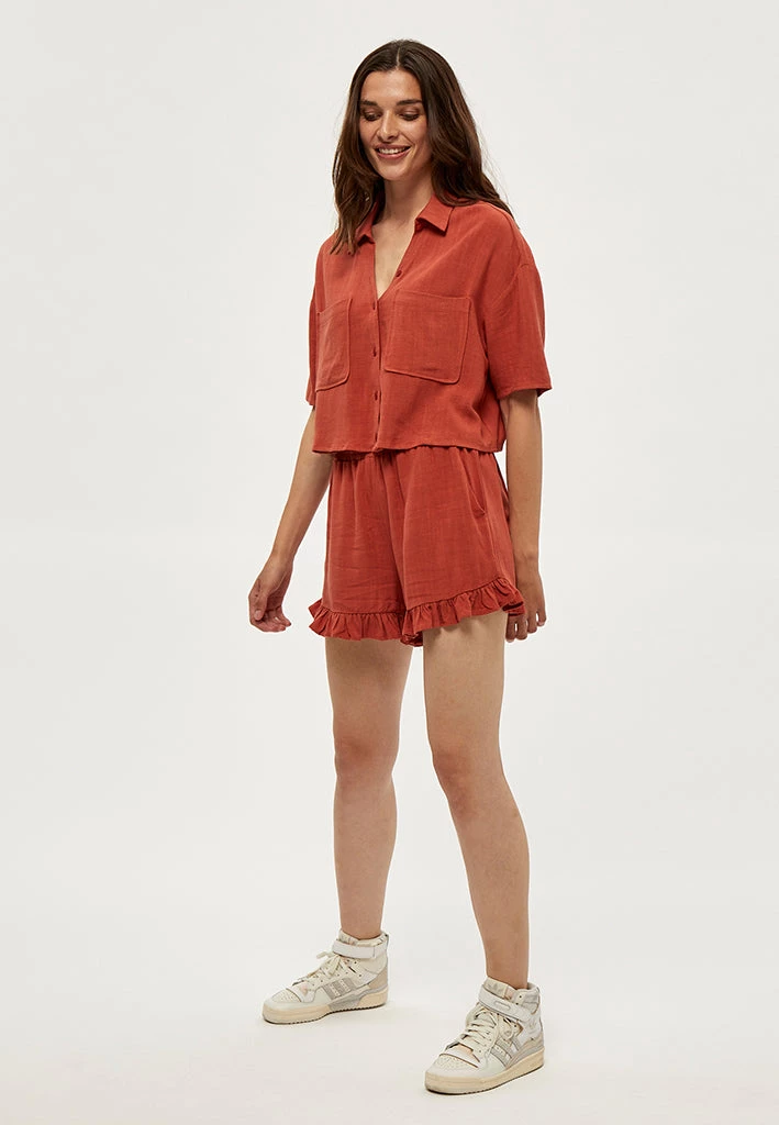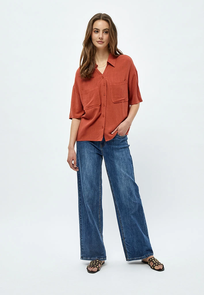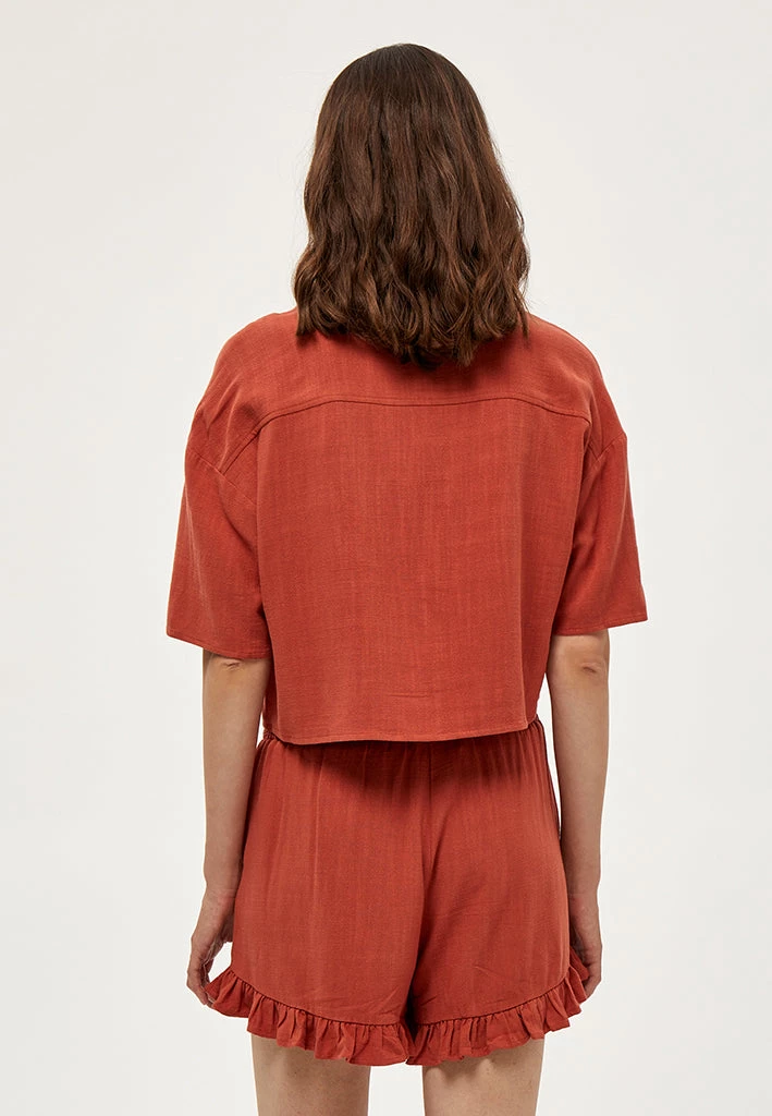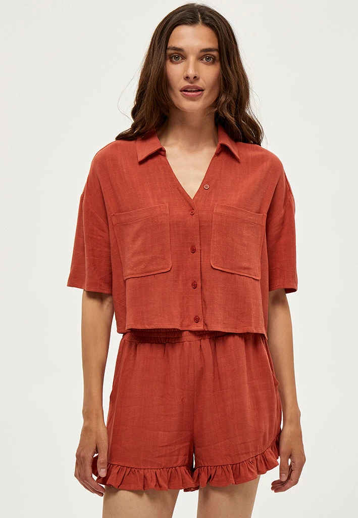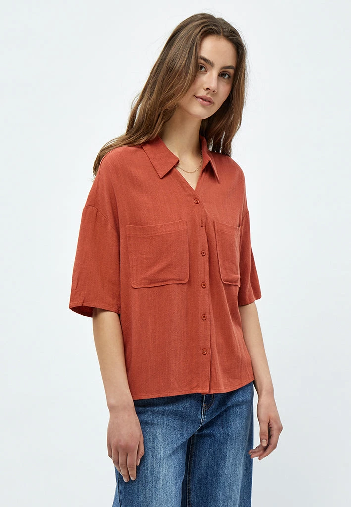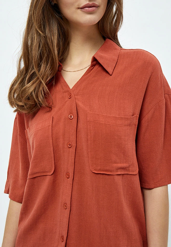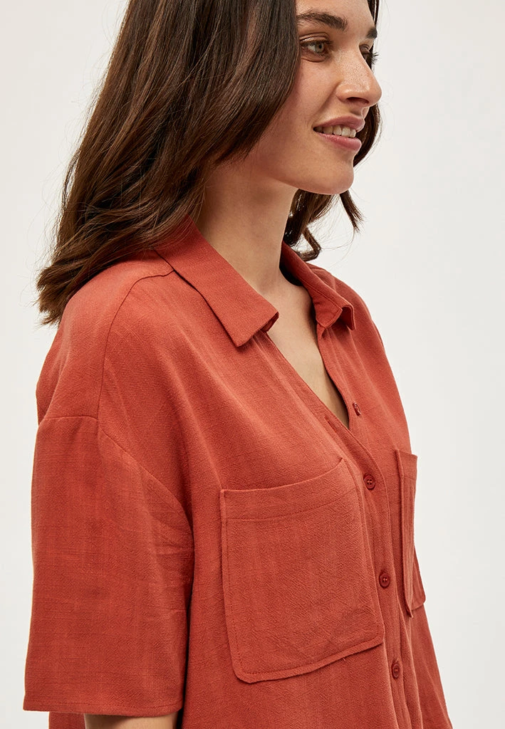 Cool short sleeved shirt in linen. It has a classic collar with pocket on the front as well as buttons. Pair with the Jin Shorts for a matching two-part set.