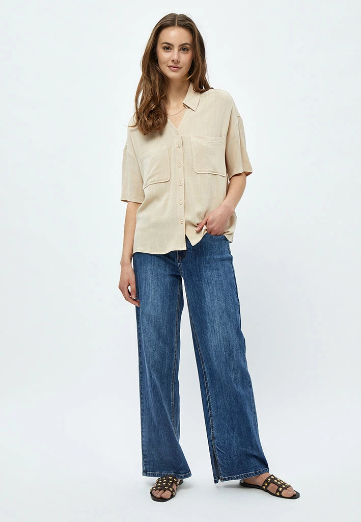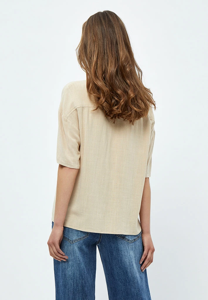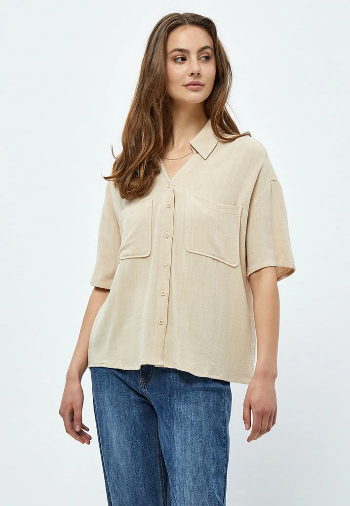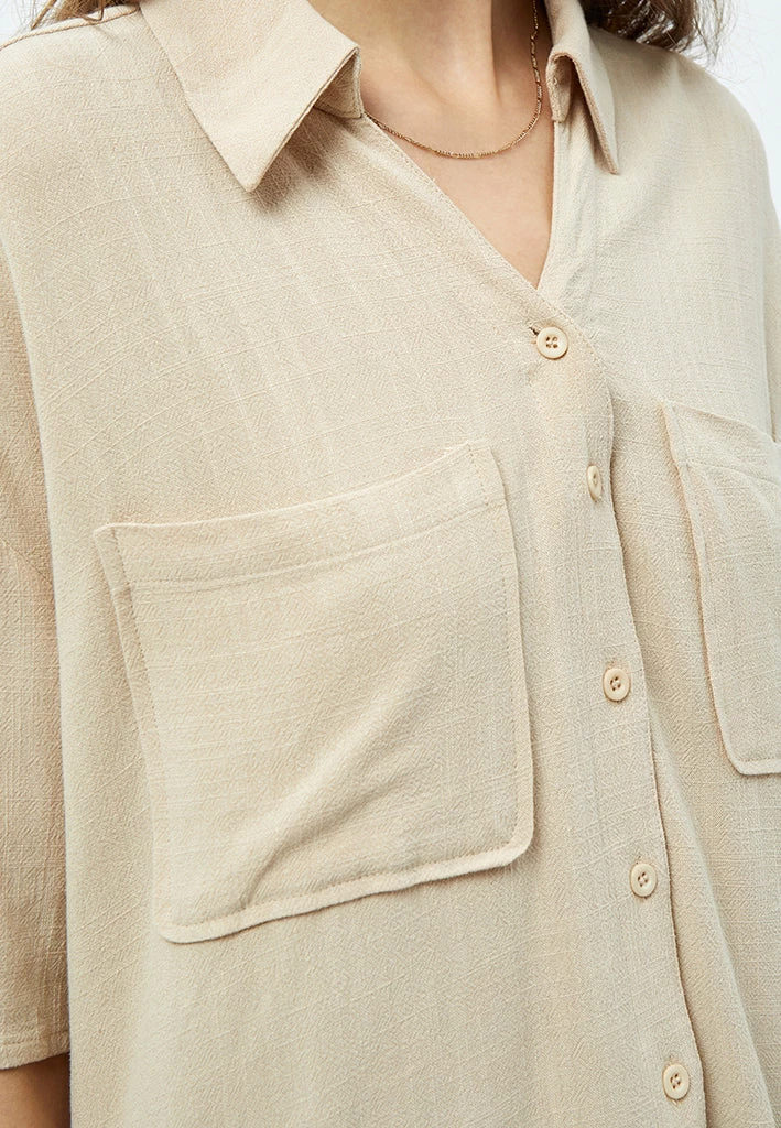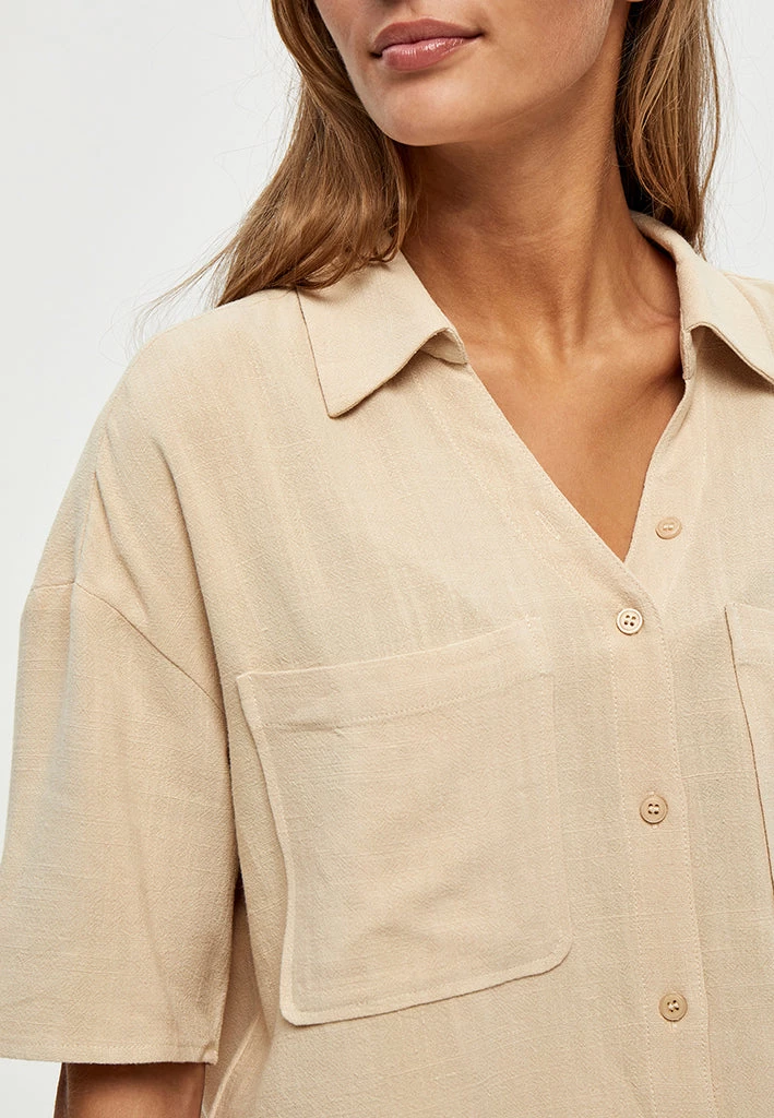 Cool short sleeved shirt in linen. It has a classic collar with pocket on the front as well as buttons. Pair with the Jin Shorts for a matching two-part set.