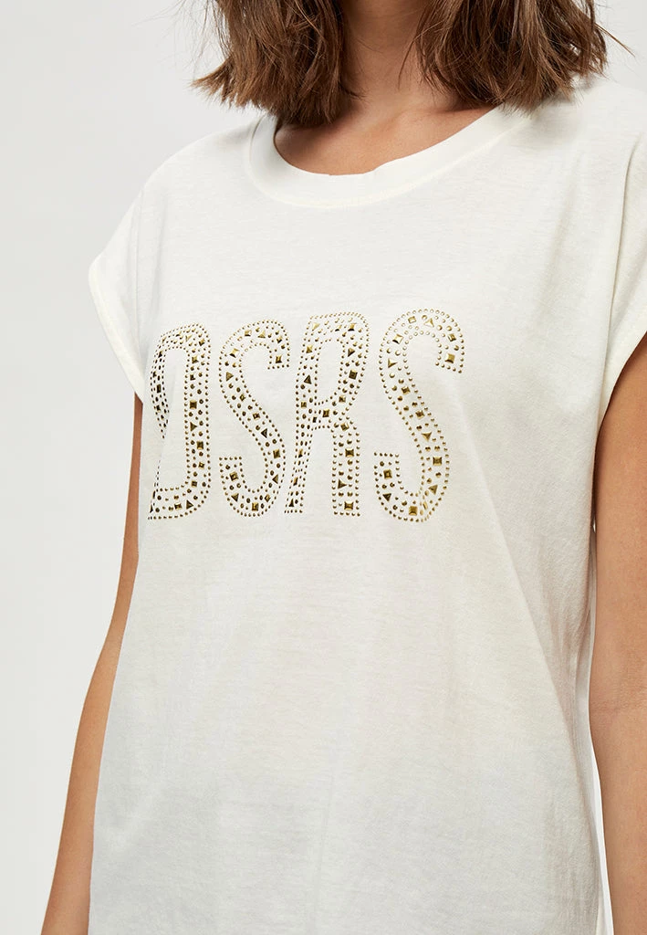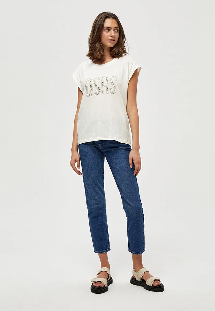 The Jinny Tee is a must-have in your wardrobe and made in 100% sustainable materials. The rather simple tee goes with everything and still adds a little detail with the studded logo. It has a round neck and short sleeves.