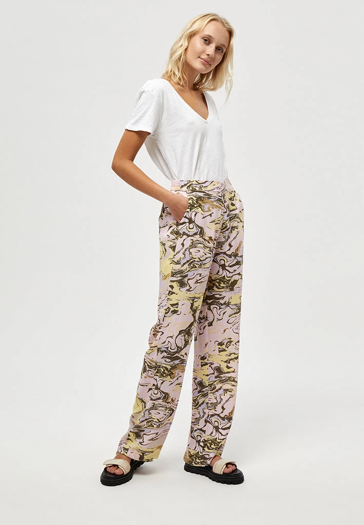 Beautiful wide pants in marble print. It has an elastic band around the waist making them super comfortable to wear. The material is 100% sustainable.