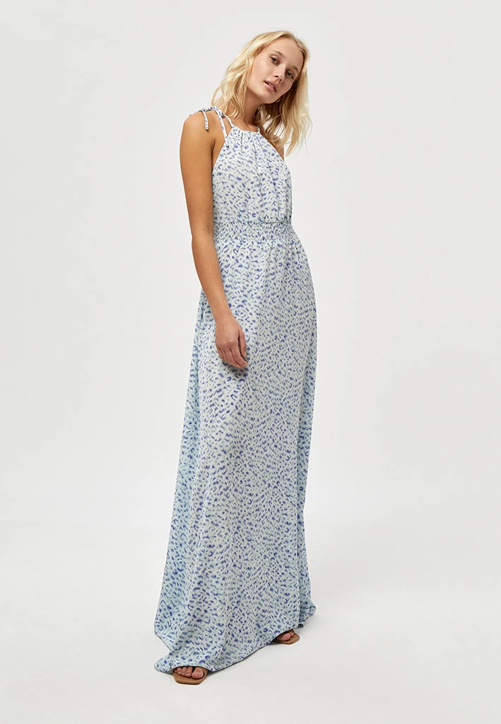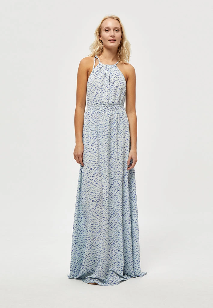 The Jordia Dress is a beautiful maxi dress with a halterneck, smock details on the waist and and a cool cut out in the back. The print is perfect for spring.