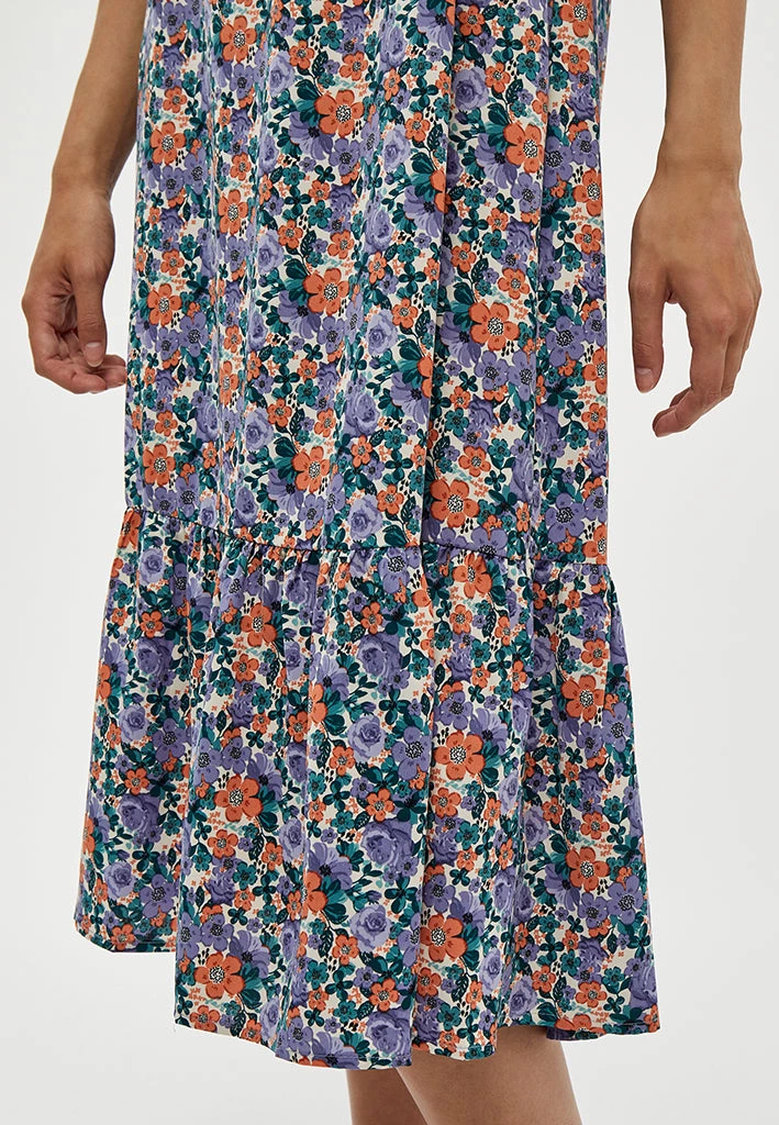 Jorissa Dress is a beautiful strapdress with a flowerprint. The buttom is ruffled which adds a nice detail to the dress. The perfect dress to travel with since it doesn’t need ironing.