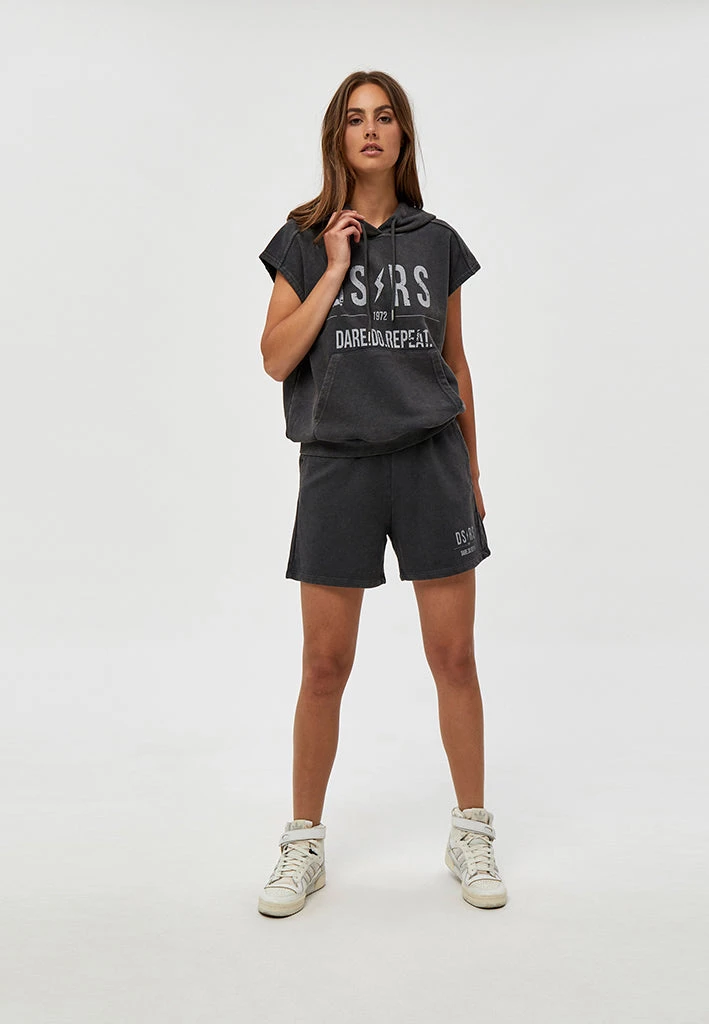 Joy Sweat Shorts is perfect for everyday use but it can also be styled up with a blazer. It is washed black and loose fitted. Par it with the Joy Hoodie for a matching two-part set.