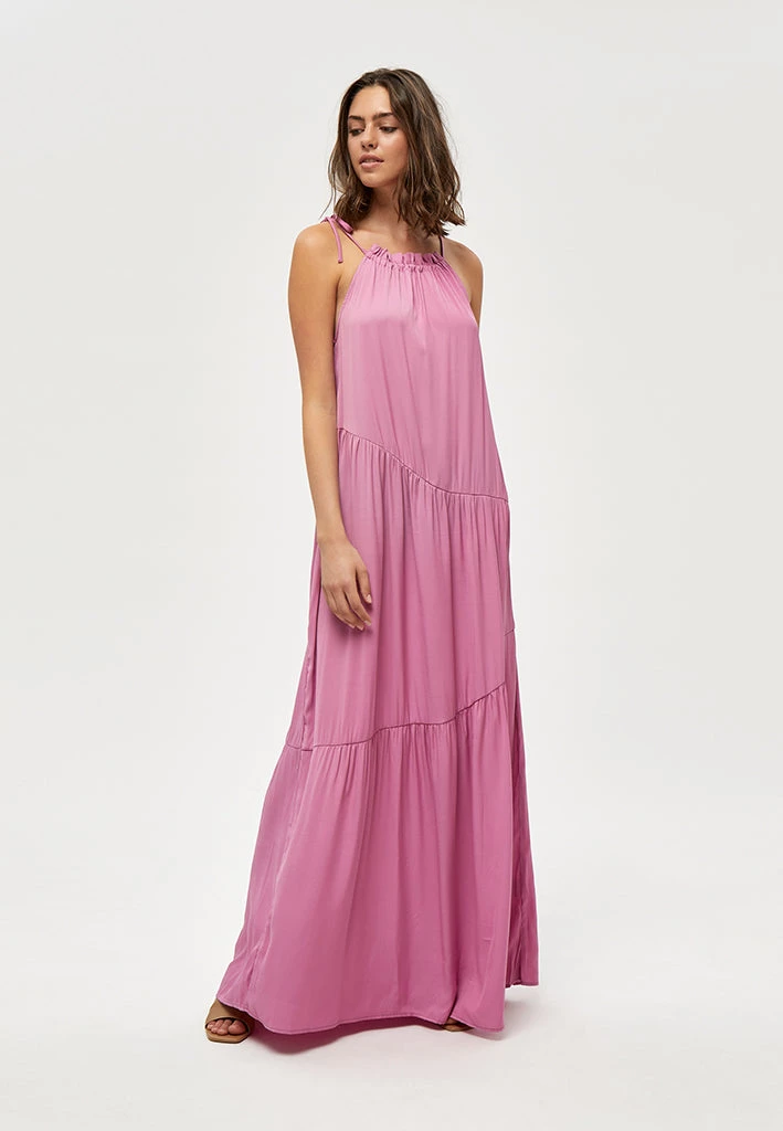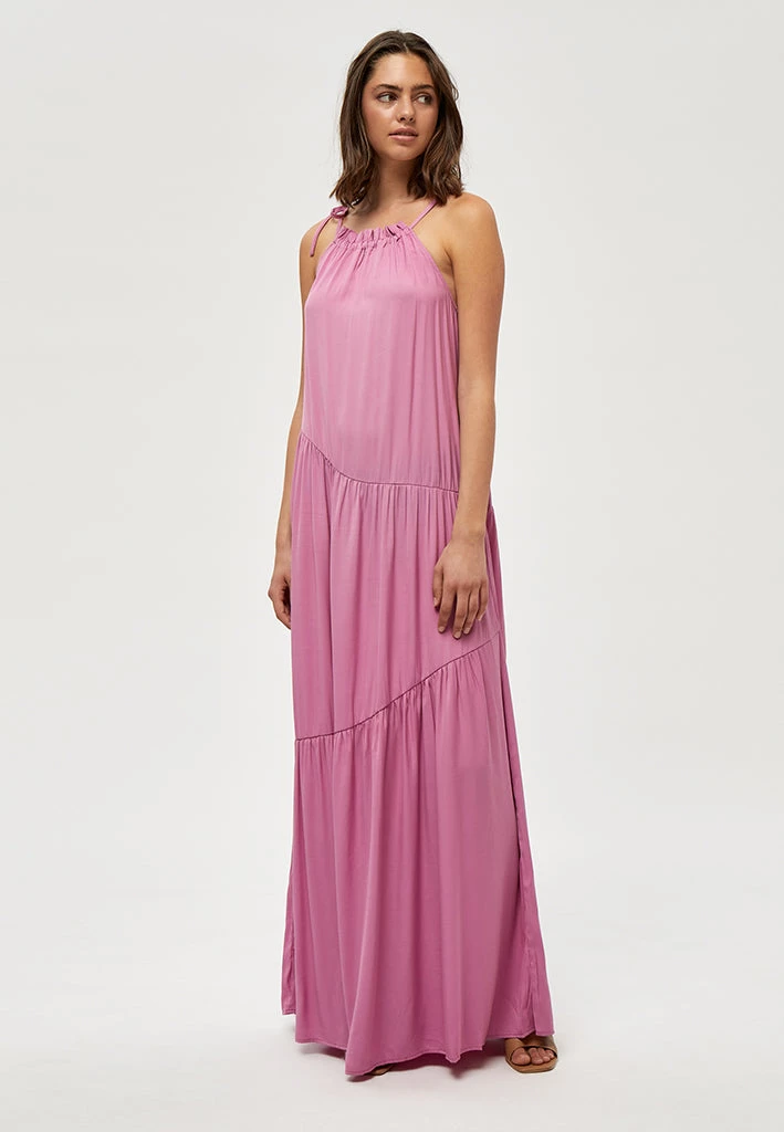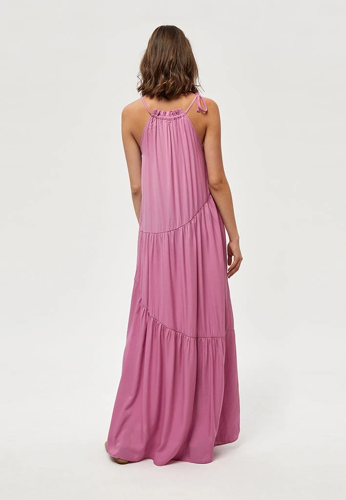 The Joyla Halter Dress has a cute halterneck that ties with a bow. It has a maxi length with ruched details. Pair it with either stilettos or sandals for a wide range of looks.