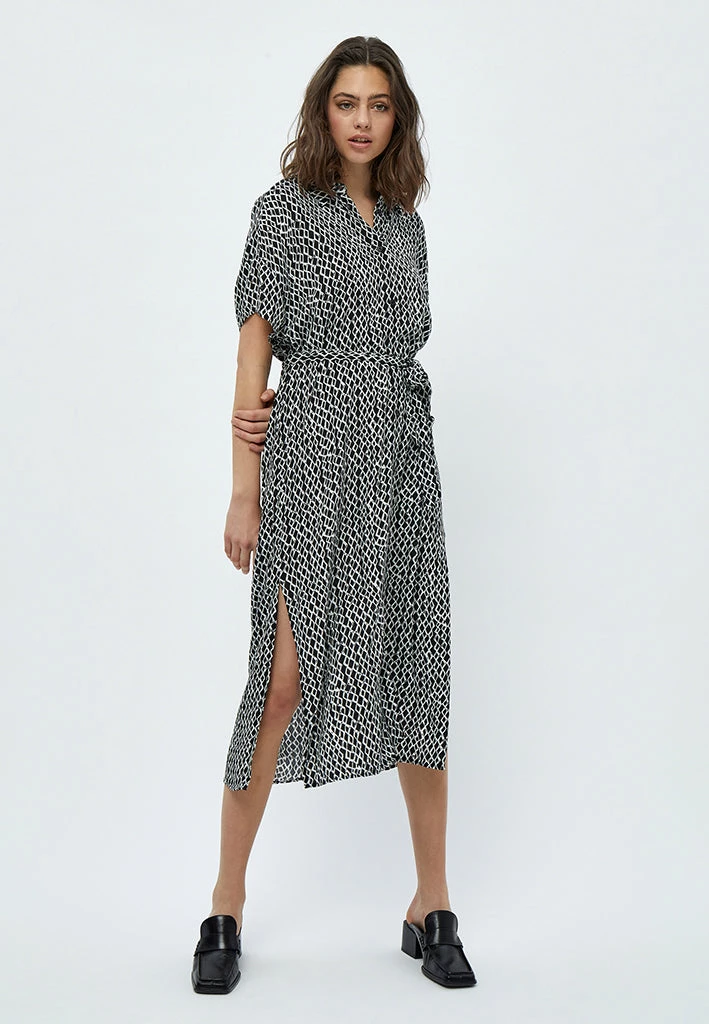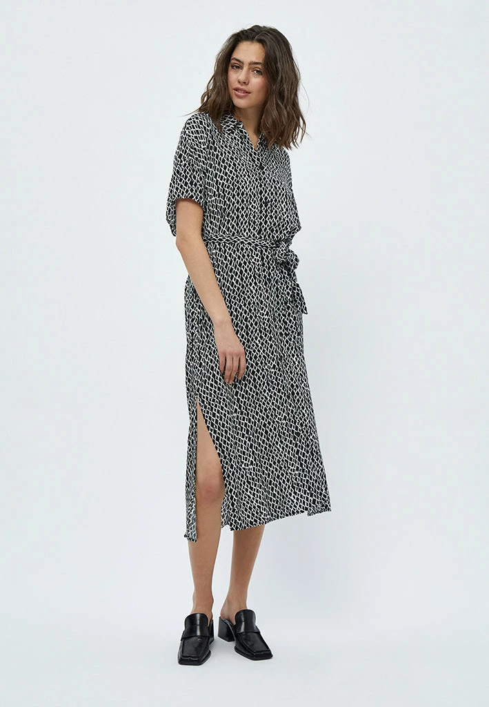 The Judi Dress is a pretty dress that closes with buttons. It has a classic collar and ties at the waist.