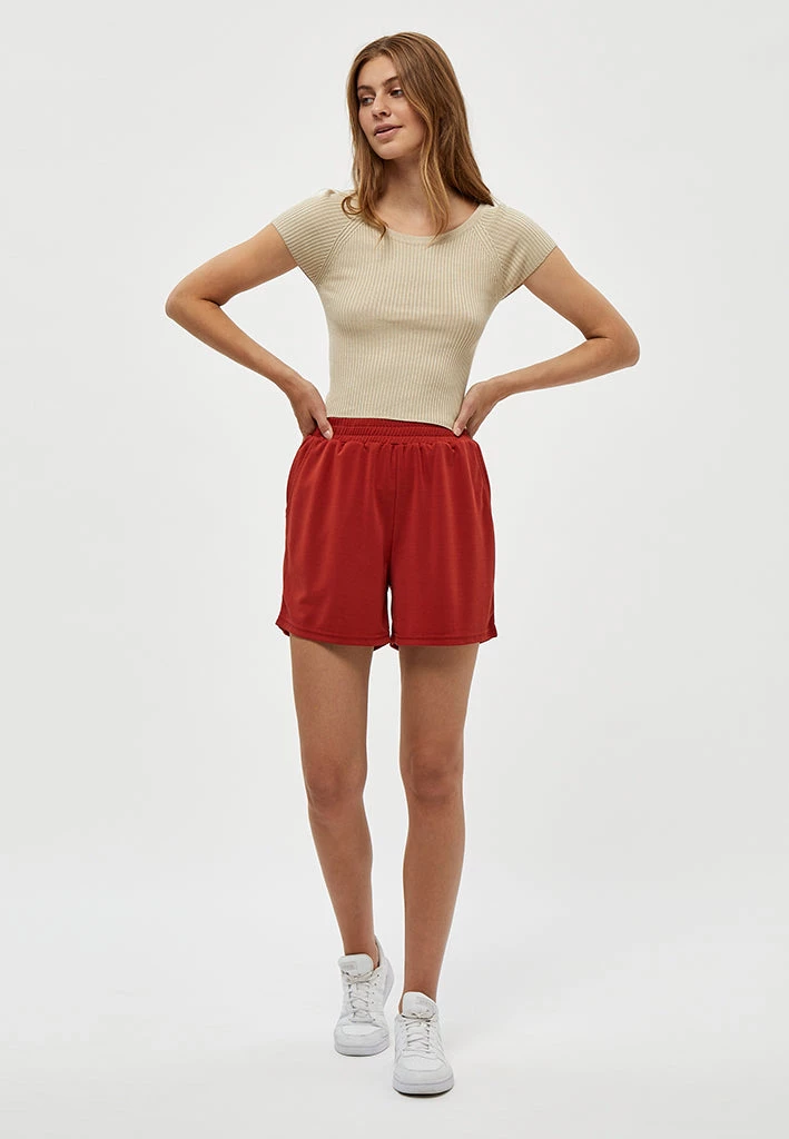 Super comfortable shorts that can be both dressed up and down. It has side pockets and an elastic band at the waist. The material is 70% which is super soft and iron-free material.
