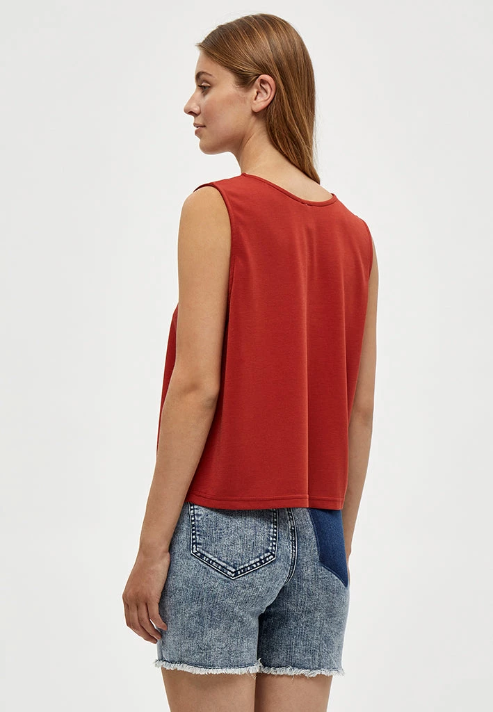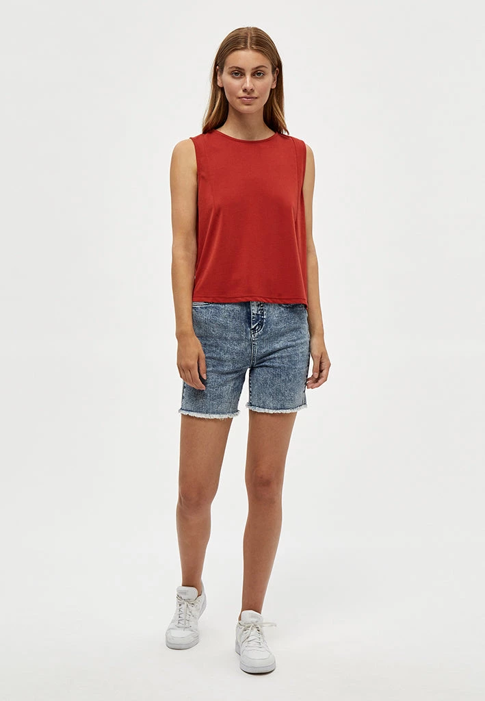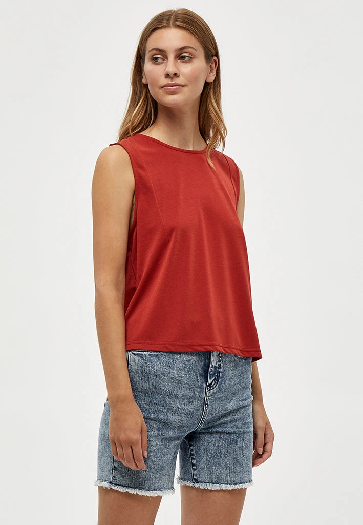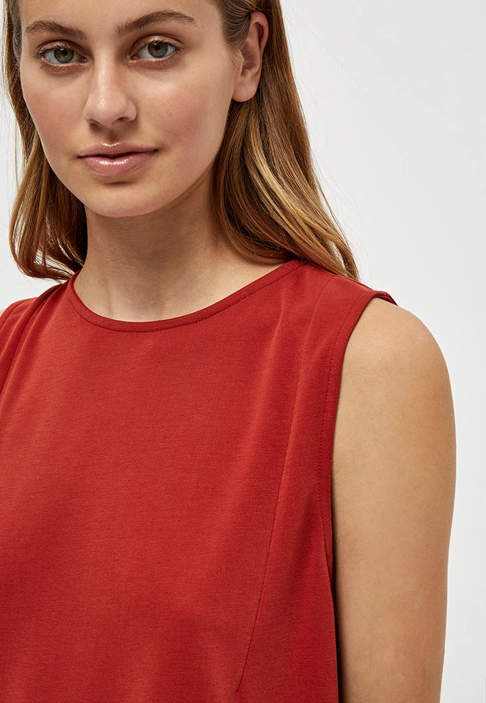 Cool sleeveles blouse with minimal details in the seams on the front. The material is 70% modal which is a very soft and iron-free material.