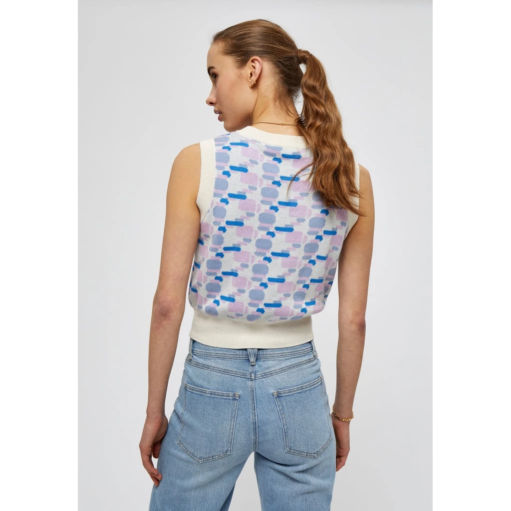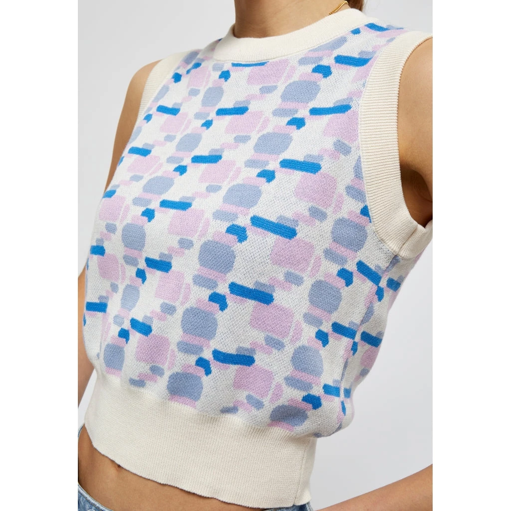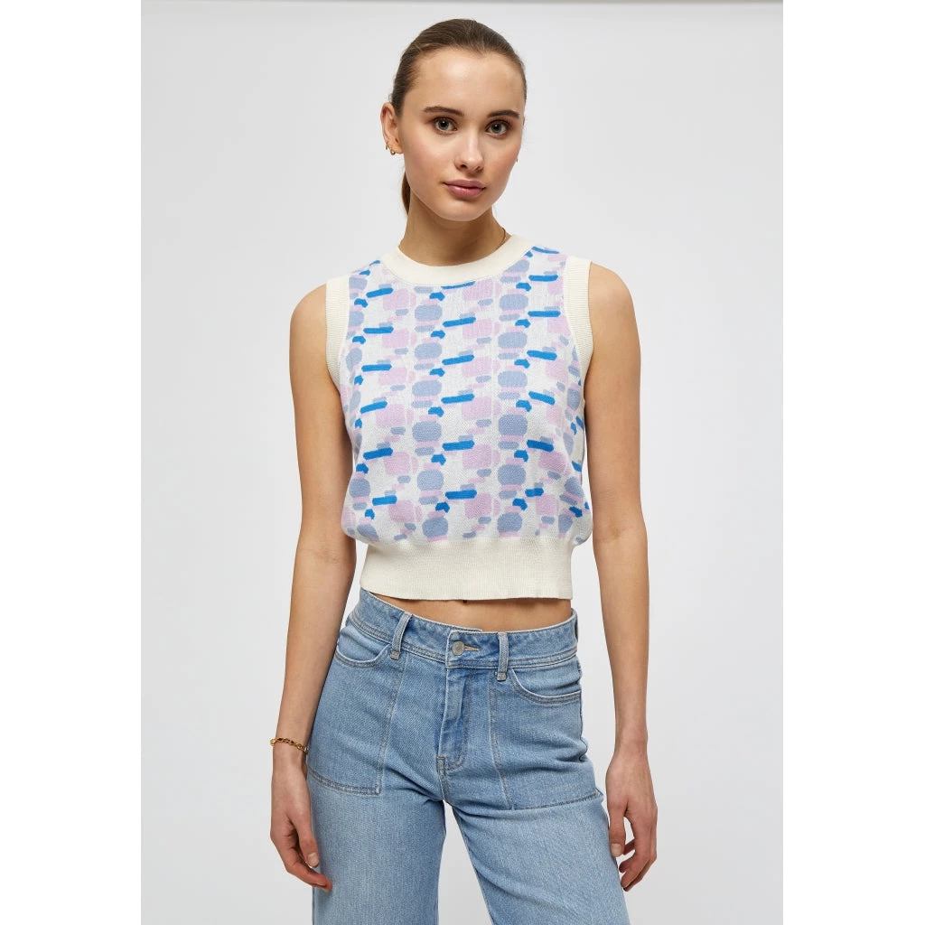 Lovely slipover in beautiful colors. The slipover has a round neck and no sleeves. Wear it on its own or on top of a simple tee or shirt.