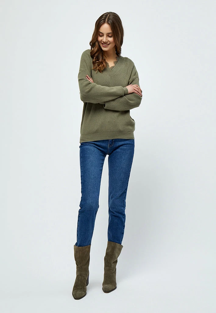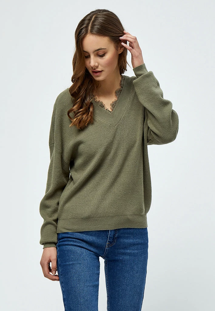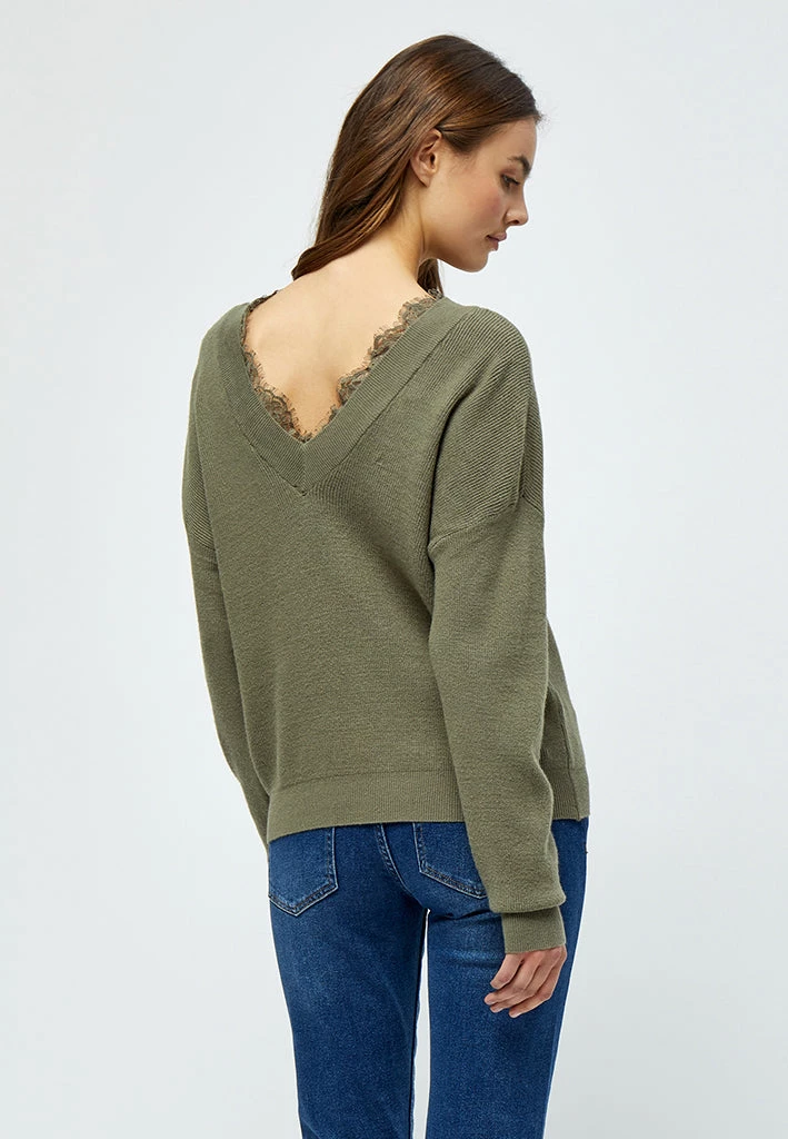 Lovely long sleeved pullover. The pullover has a v neckline both at the front and back. It has a beautiful and feminin lace detail.