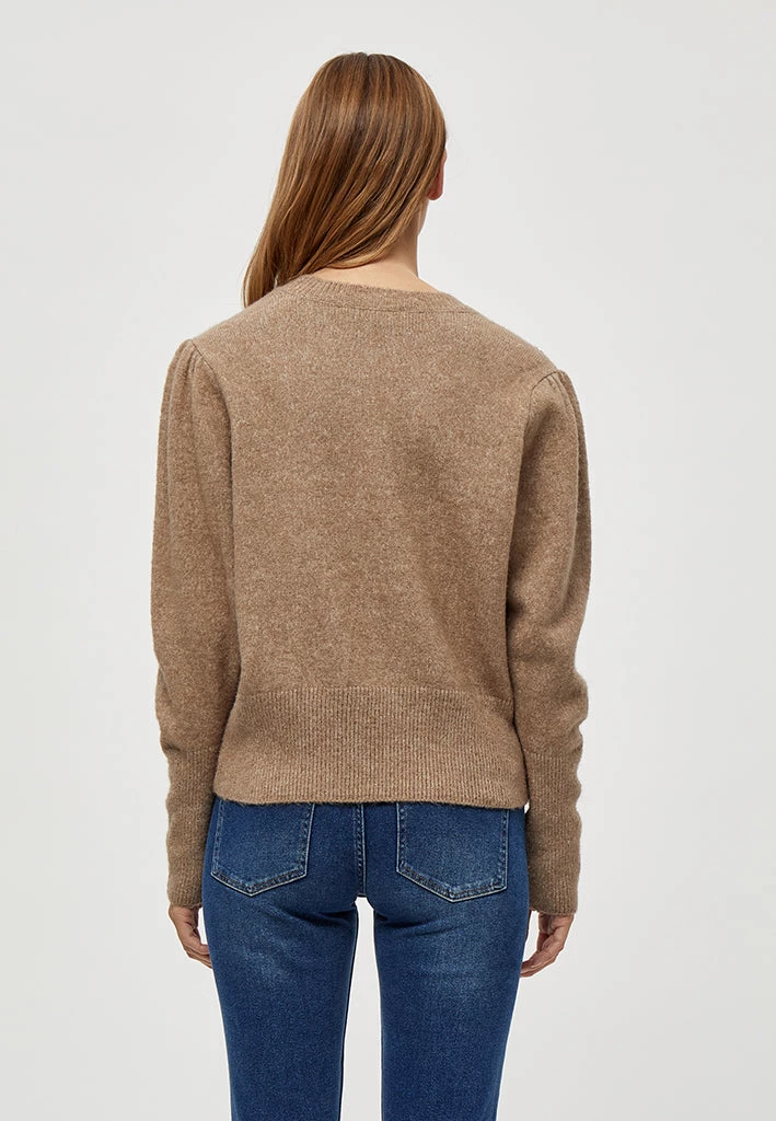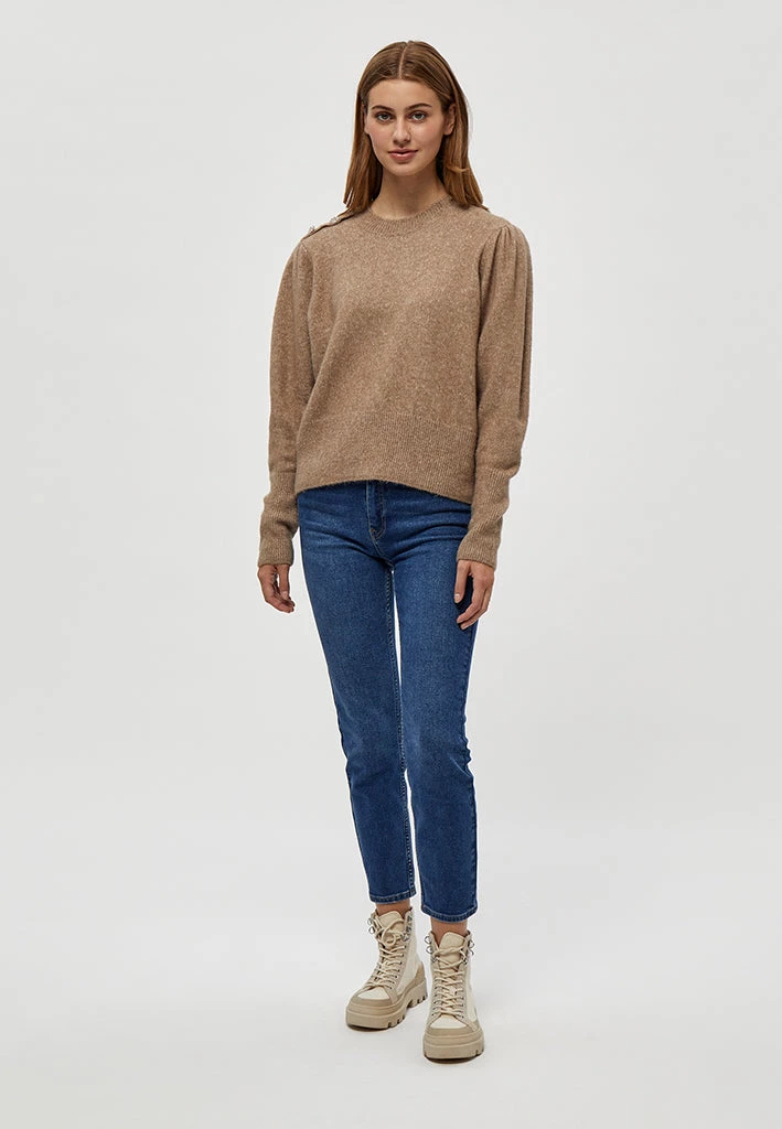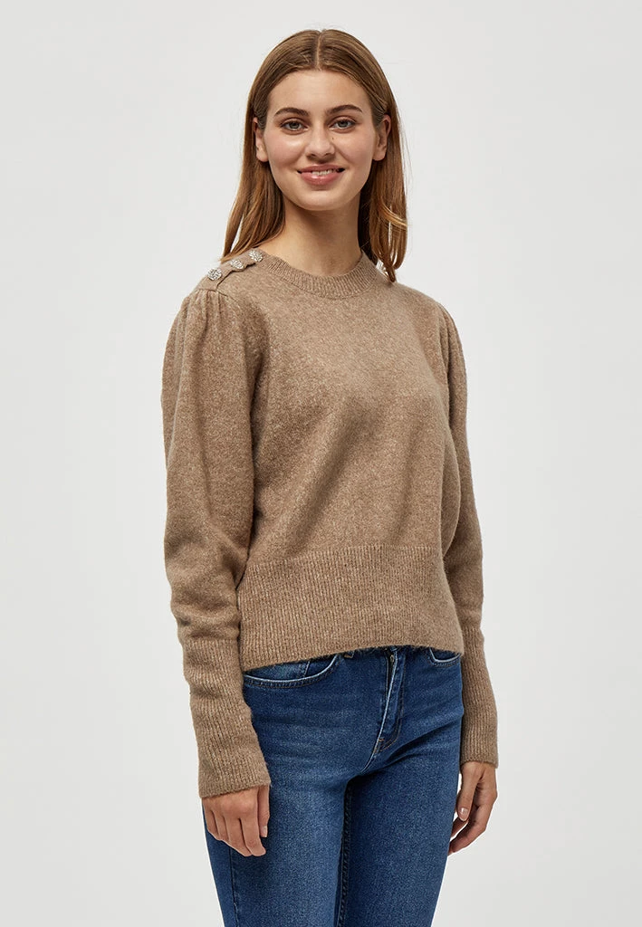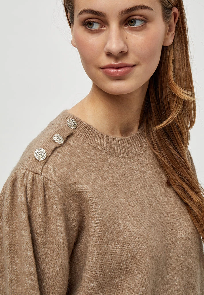 Lovely knit with nice details. The knit has rib at the bottom, by the neck and at the bottom of the sleeves. It has beautiful buttons on one of the shoulders.