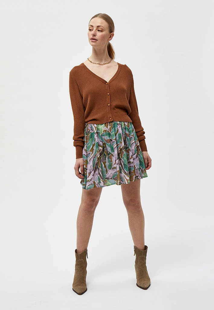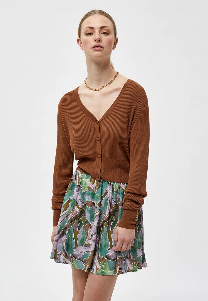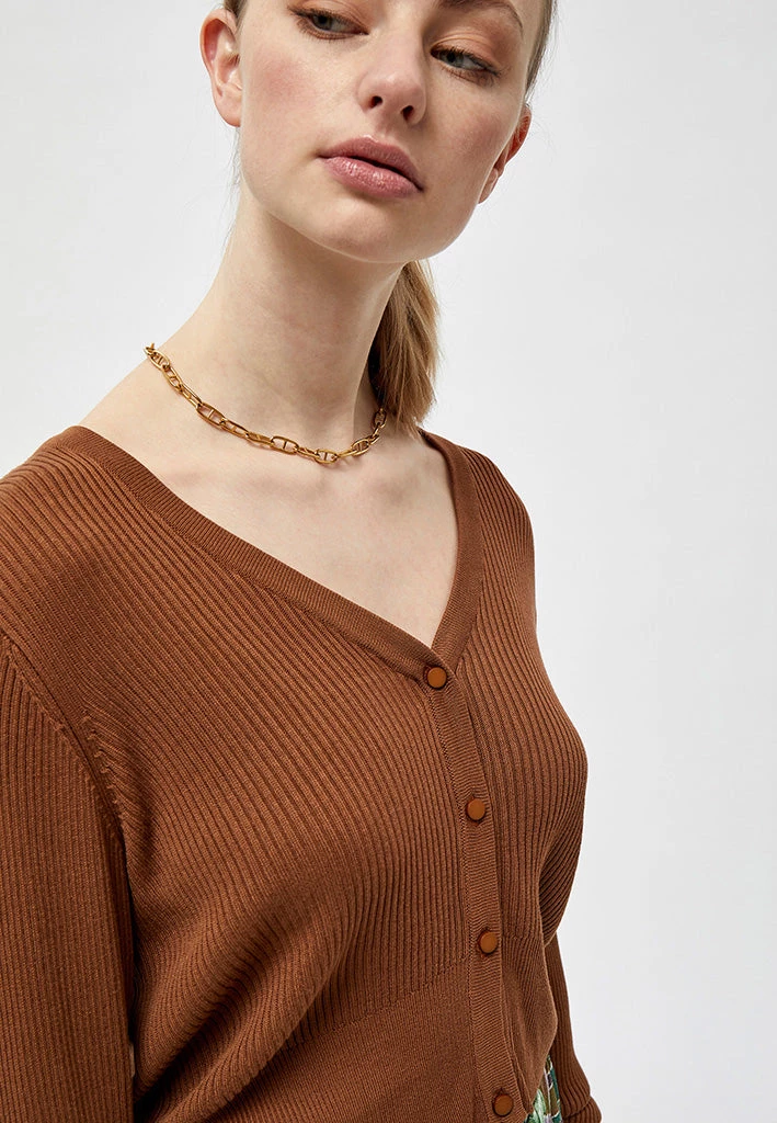 Lovely cardigan with rib. The cardigan is tightly fitted and has long sleeves. It has a v-neck and is closed by buttons.