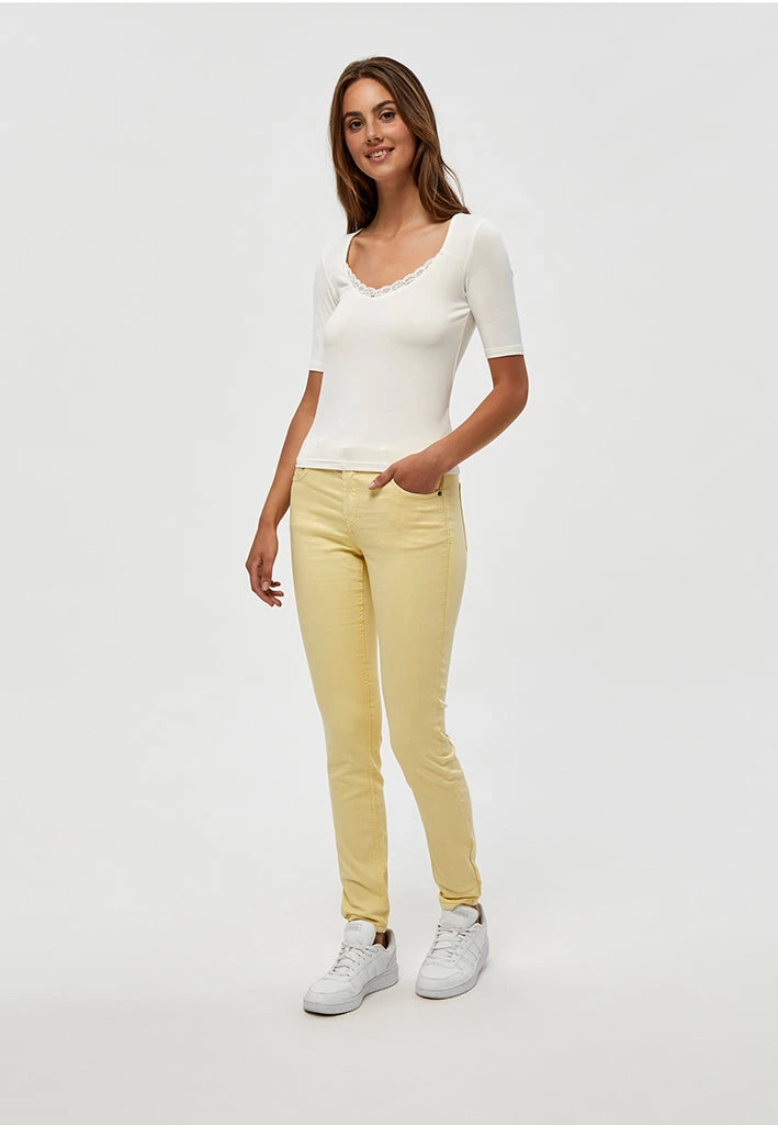 Cool jeans in a broard variety of colors. The jeans are formfitted. They are closed by a zipper and button. The jeans have beltstraps. They are a must have and are easy to style.