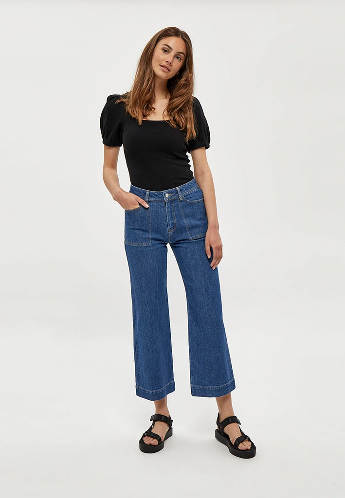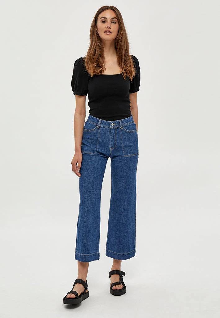 Jeans with zip fly and a mid waist. The jeans have a regular fit and there are five pockets.