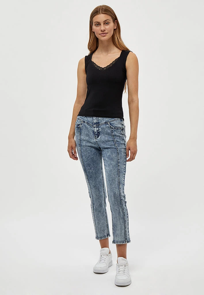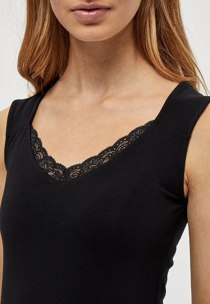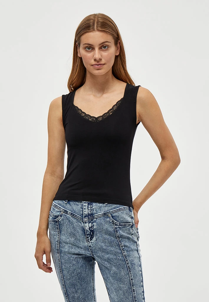 The Giselle Lace Top is an essential in every wardrobe. A staple top with no sleeves and a little lace trim on the collar.