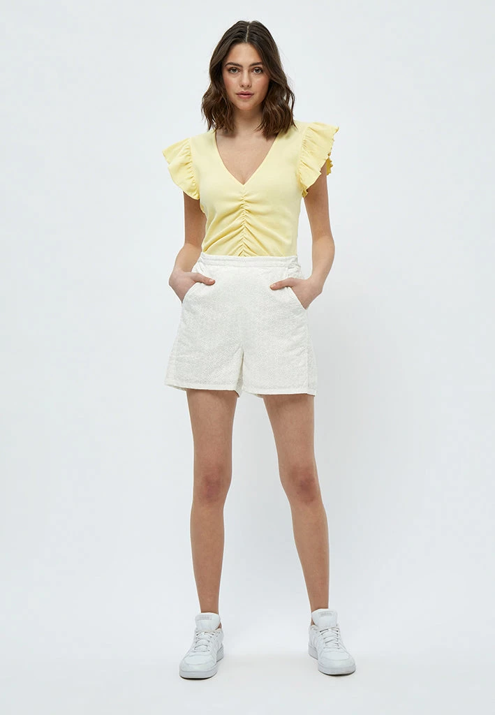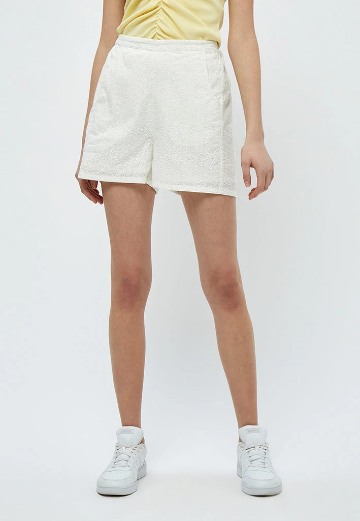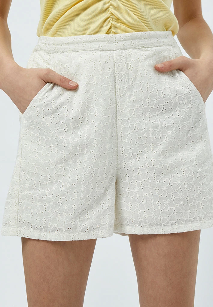 Jela Shorts in olive green with embroidery. It has side pockets and an elastic band at the waist to make them super comfortable.