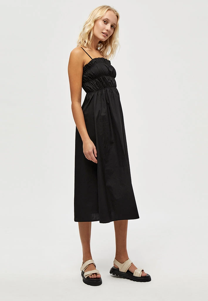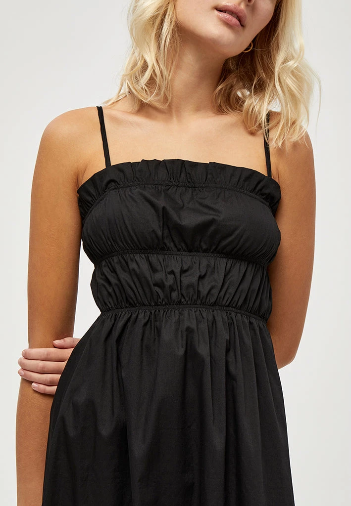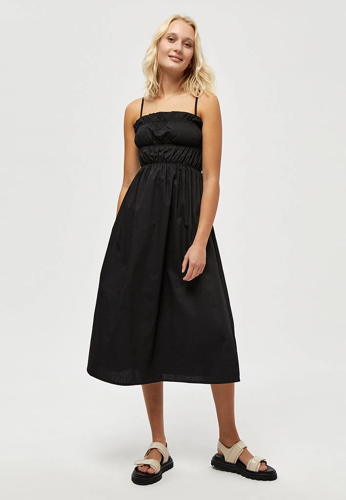 The Jeliah Dress is a beautiful maxi dress with smock details and little frills on the collar. It has adjustable straps to match everyones need.