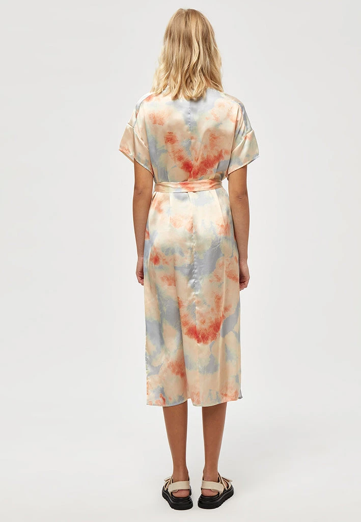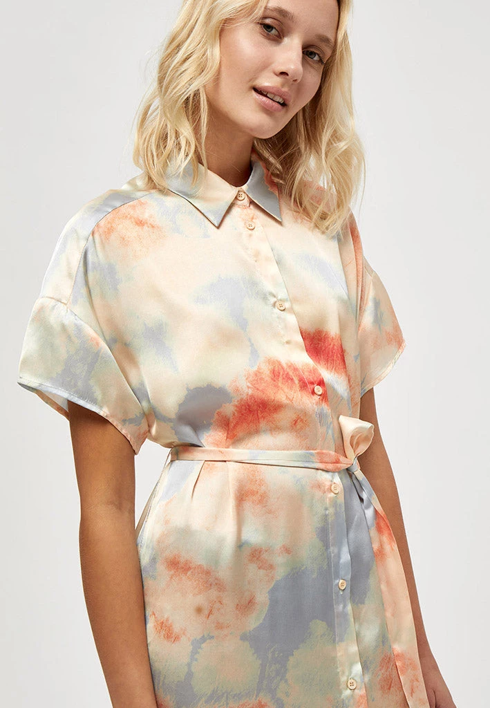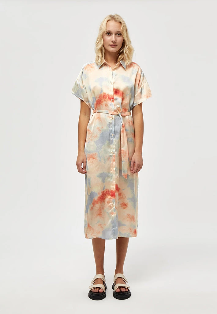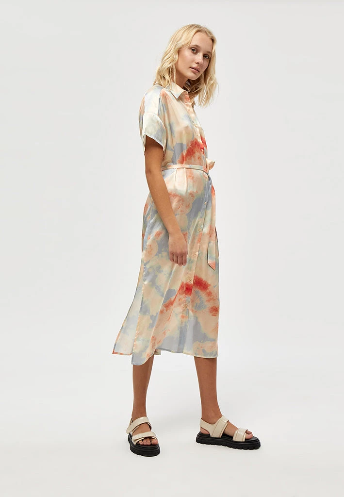 Jem Judy Dress is a perfect dress for spring and summer with its beautiful sunset colors. The dress has a classic collar, buttons all the way down, slits in both sides and ties at the waist.