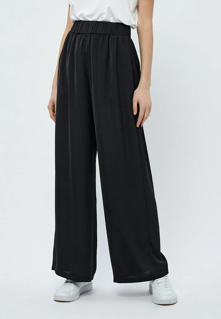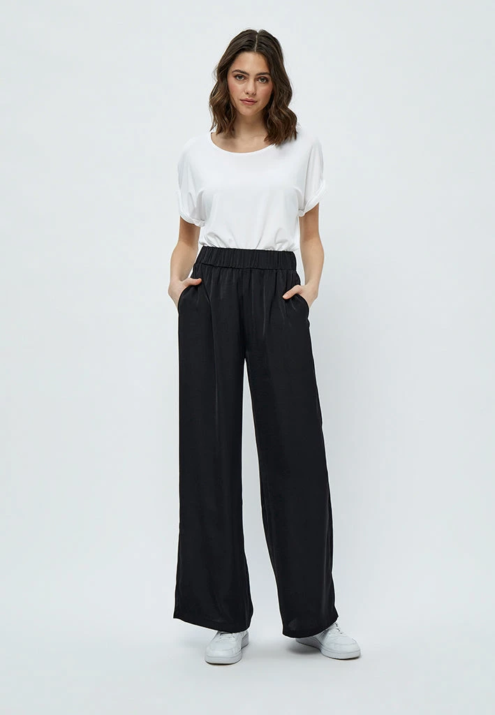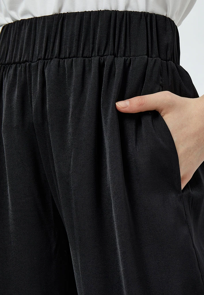 Super comfortable and wide pants. They have elastic bands on the hips and side pockets. The perfect pants for relaxing or dressing up with a blazer.