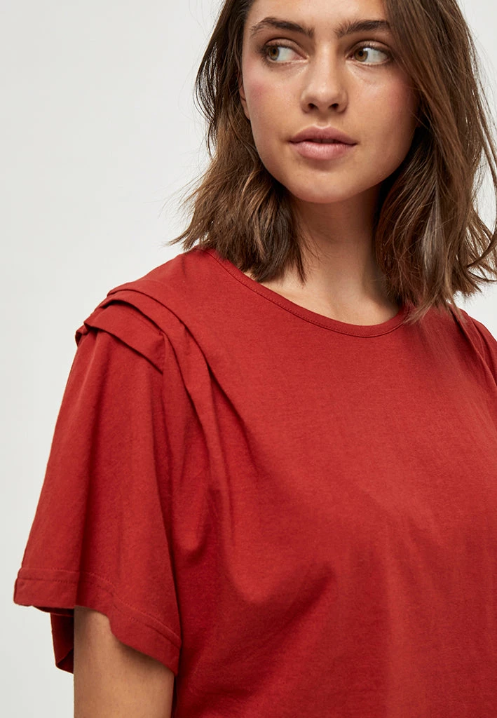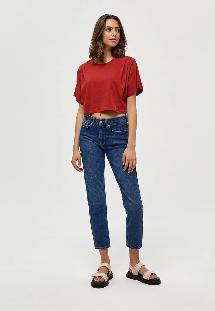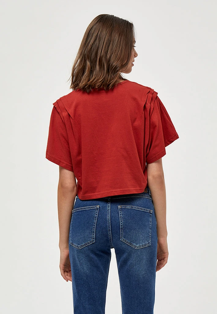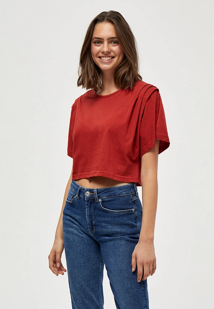 Cool cropped tee with boxy fit. It has some cute details on the shoulder for details. Perfect to style with just about anything in your wardrobe.