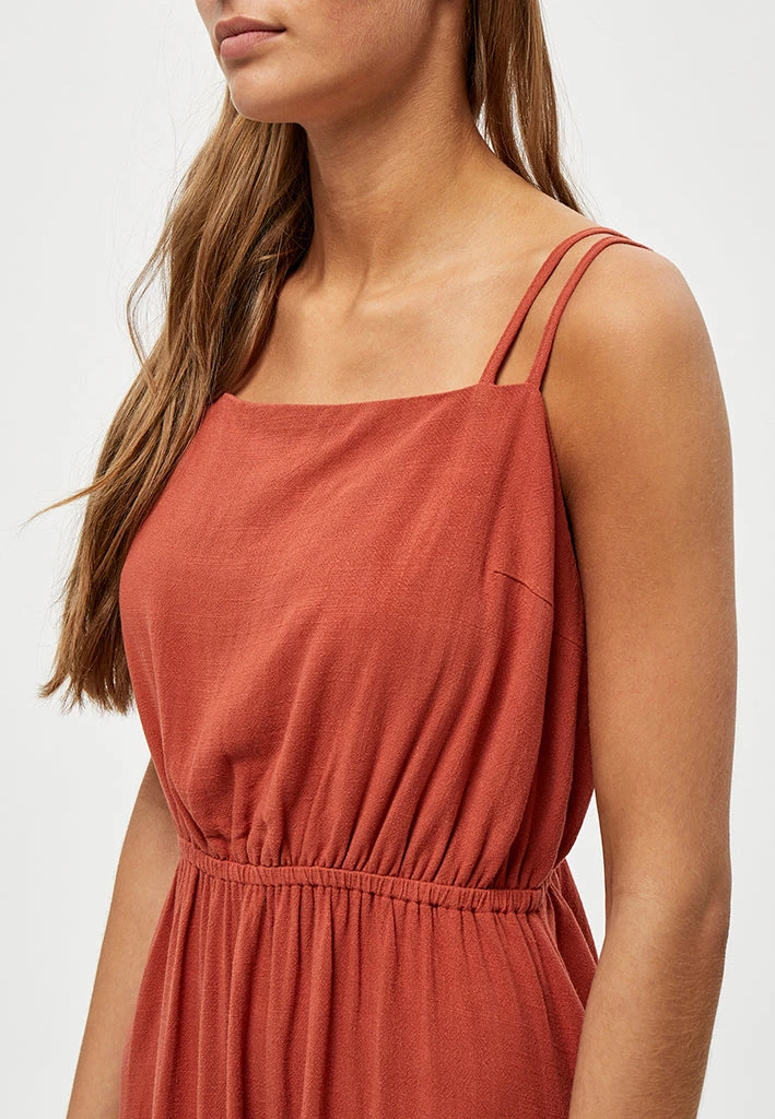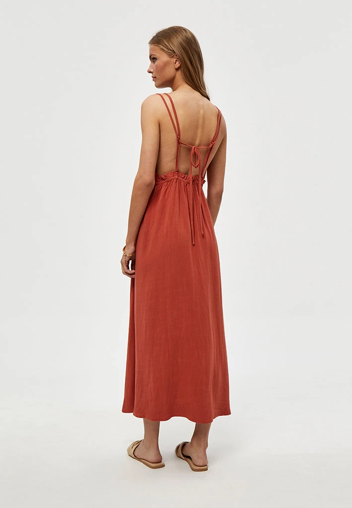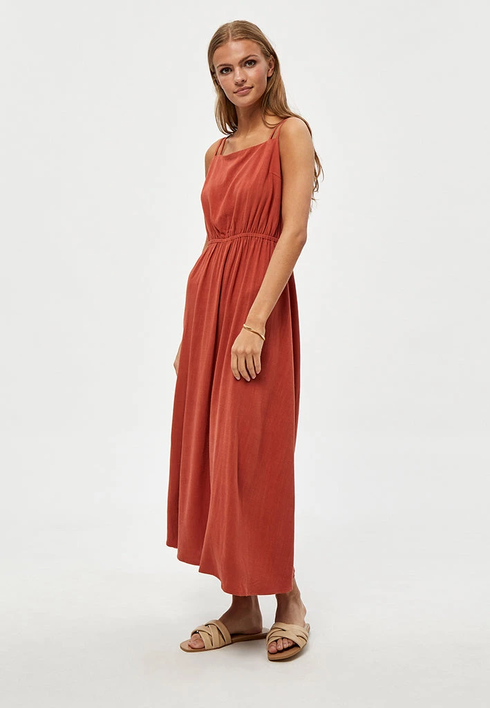 Jin Dress is a beautiful maxi dress with adjustable straps to fit your needs. It has an elastic band at the waist and an open bag for cool details.