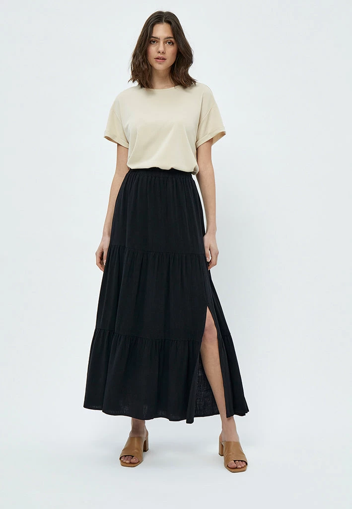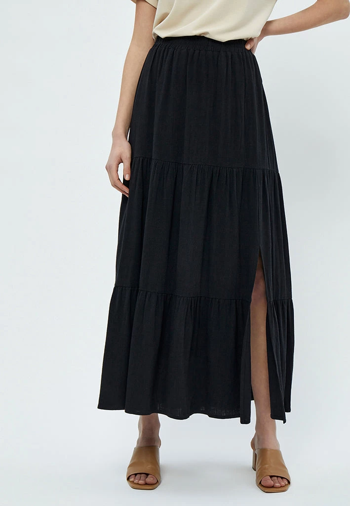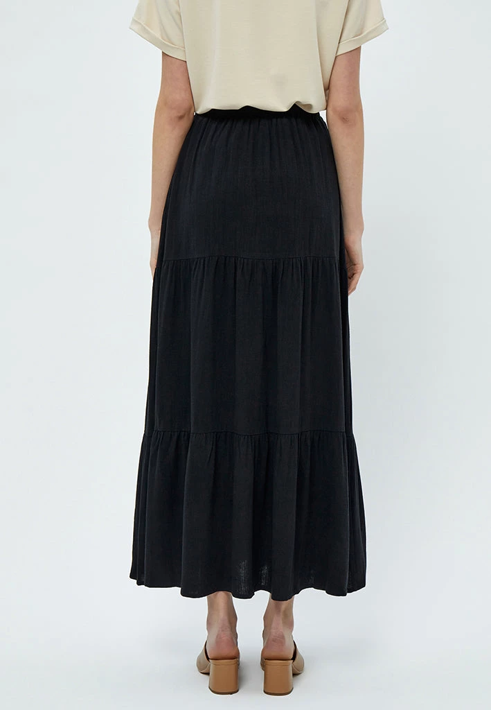 Jin Skirt is a cool maxi skirt in linen. It has ruffles all the way down and comes with a elastic band at the waist which is making them super comfortable,