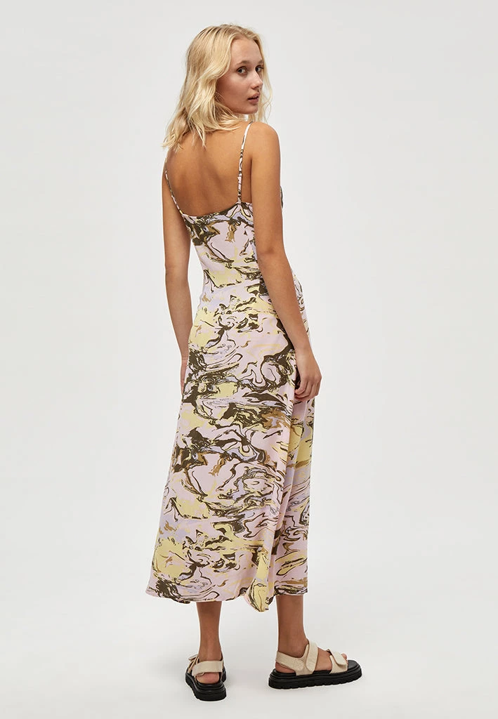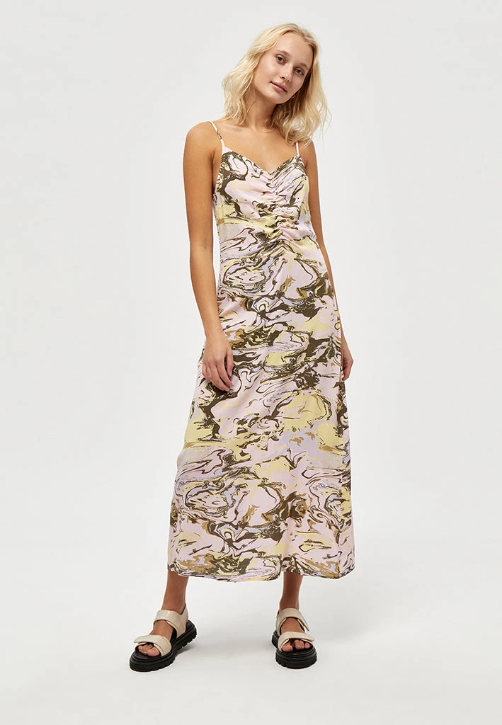 Beautiful maxi dress in marble print with scrunches in the front. It has adjustable straps so you can adjust the dress just for you. It is made from 100% sustainable materials.