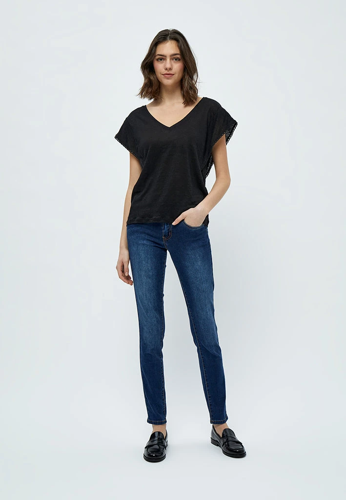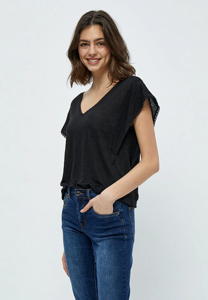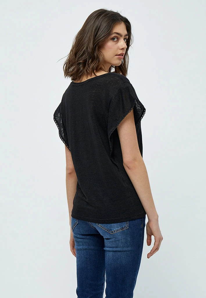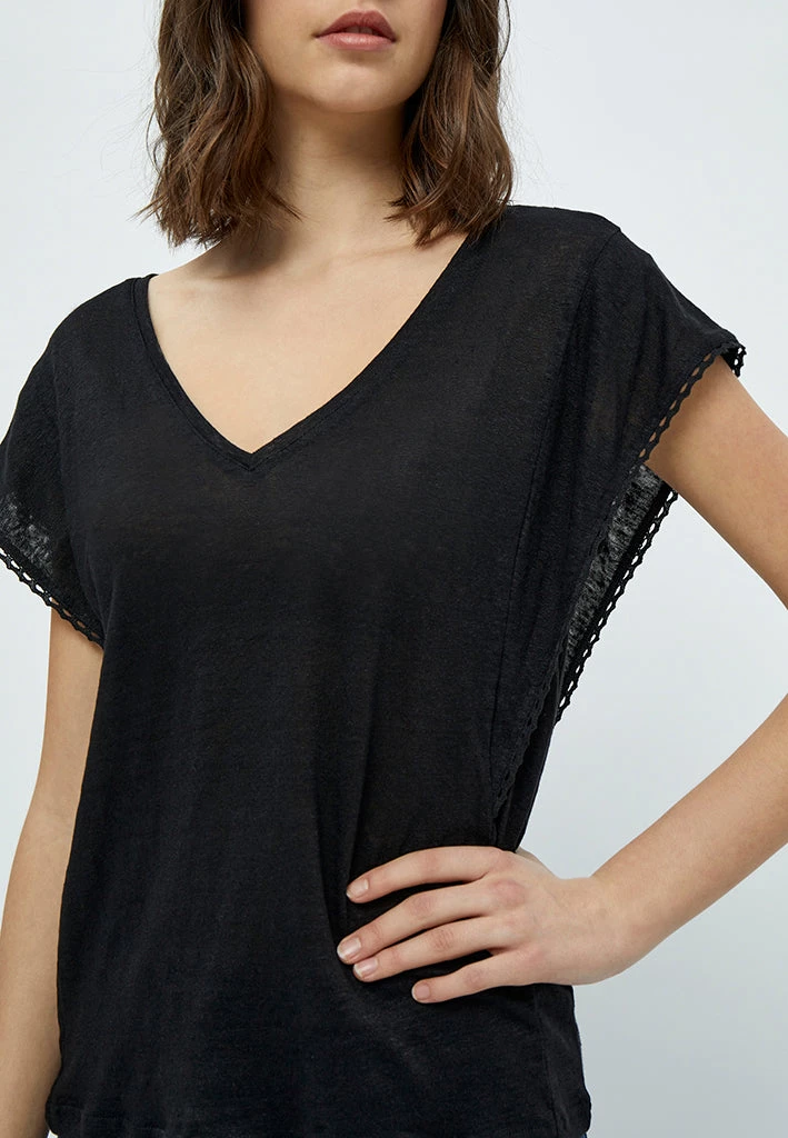 The Jodi Tee is a cute short sleeves tee in linen. The tee has a v-neck and beautiful details with its crochet on the sleeves.