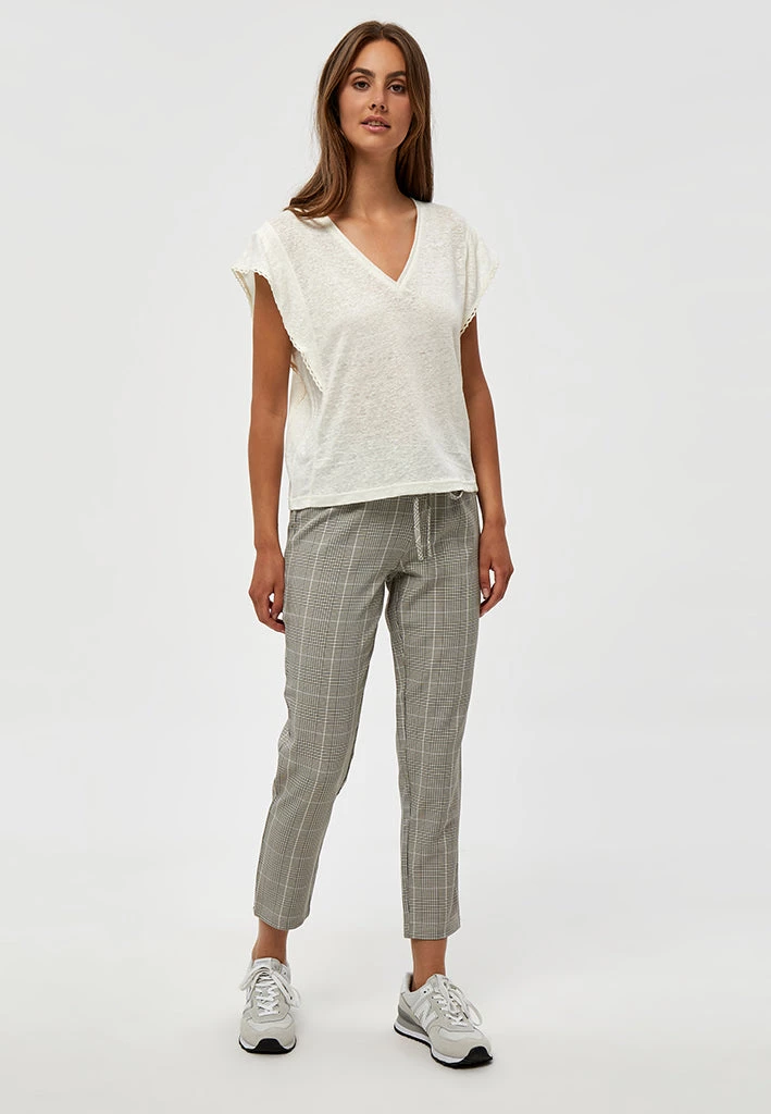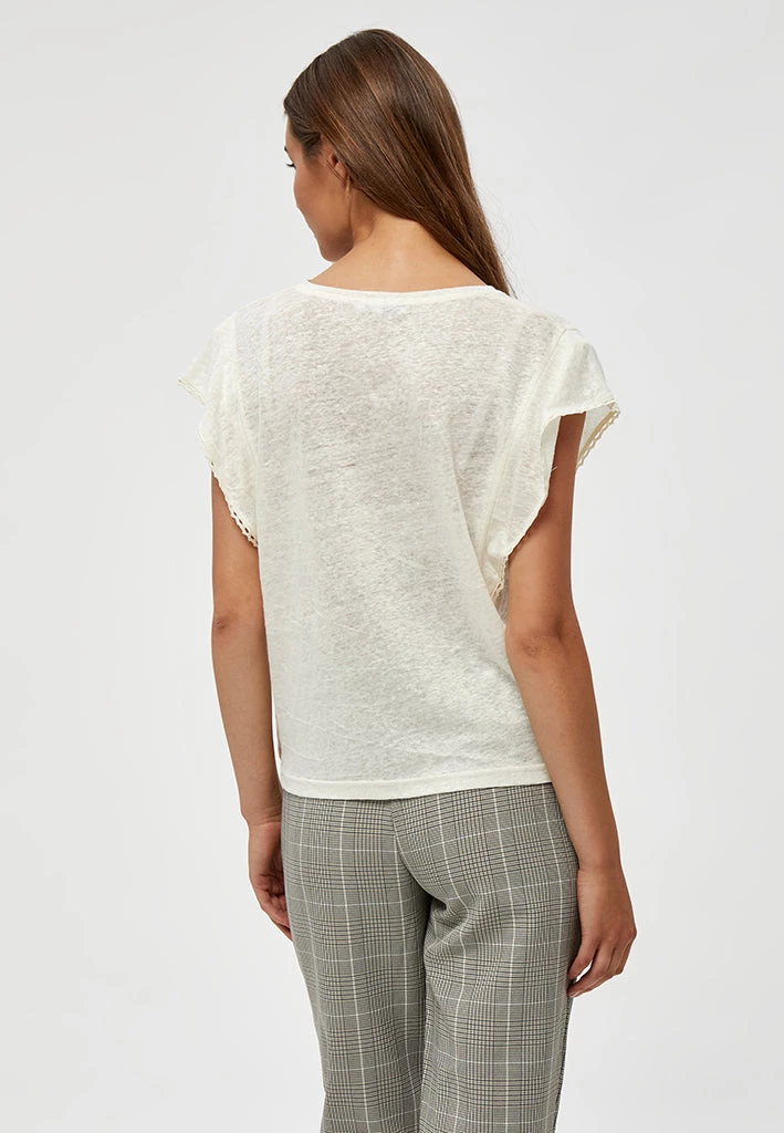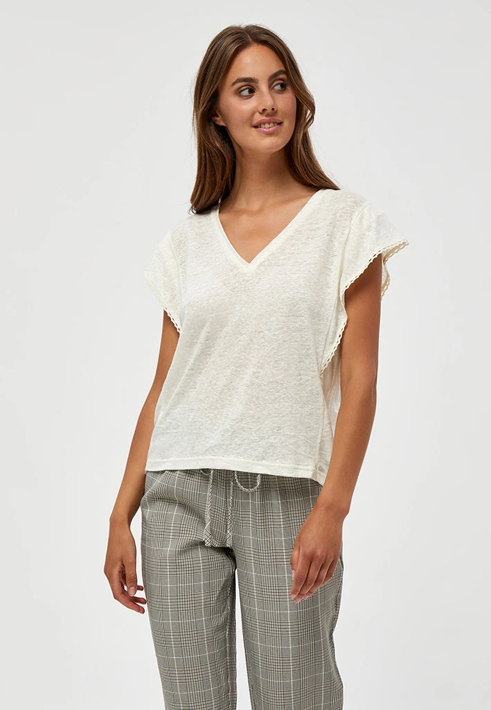 The Jodi Tee is a cute short sleeves tee in linen. The tee has a v-neck and beautiful details with its crochet on the sleeves.