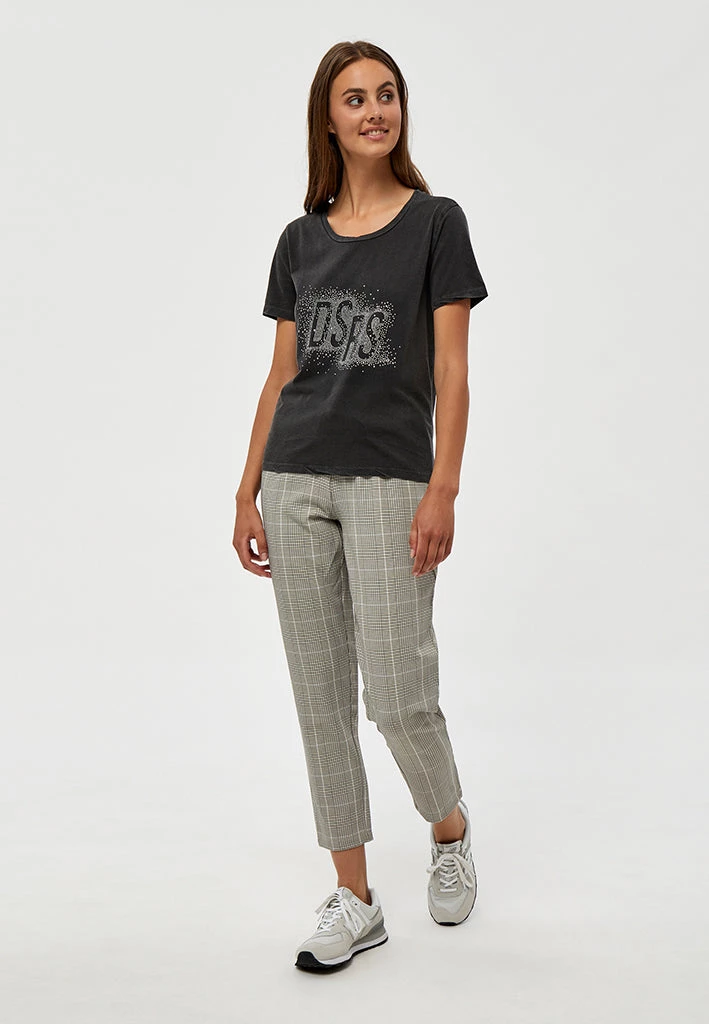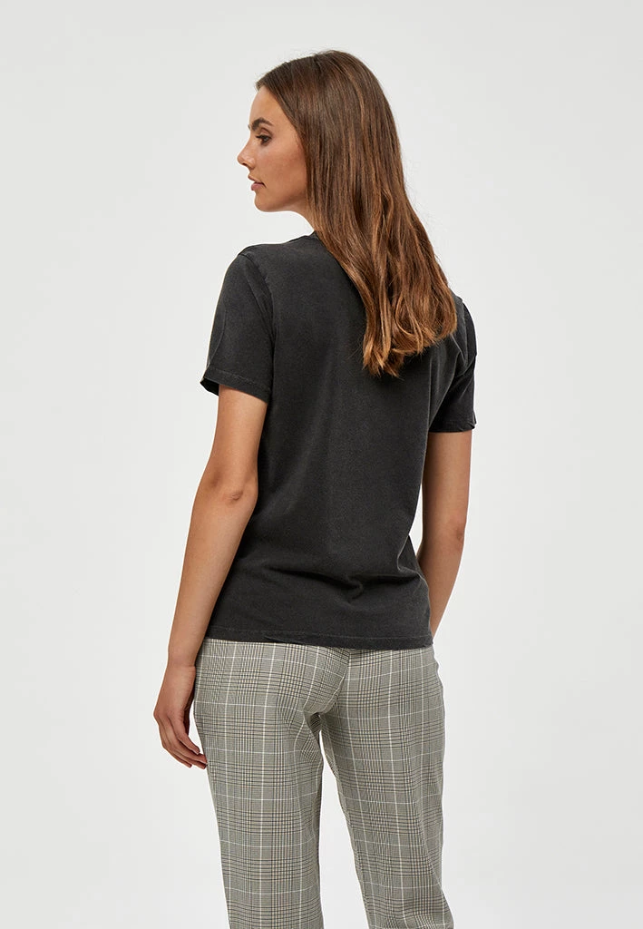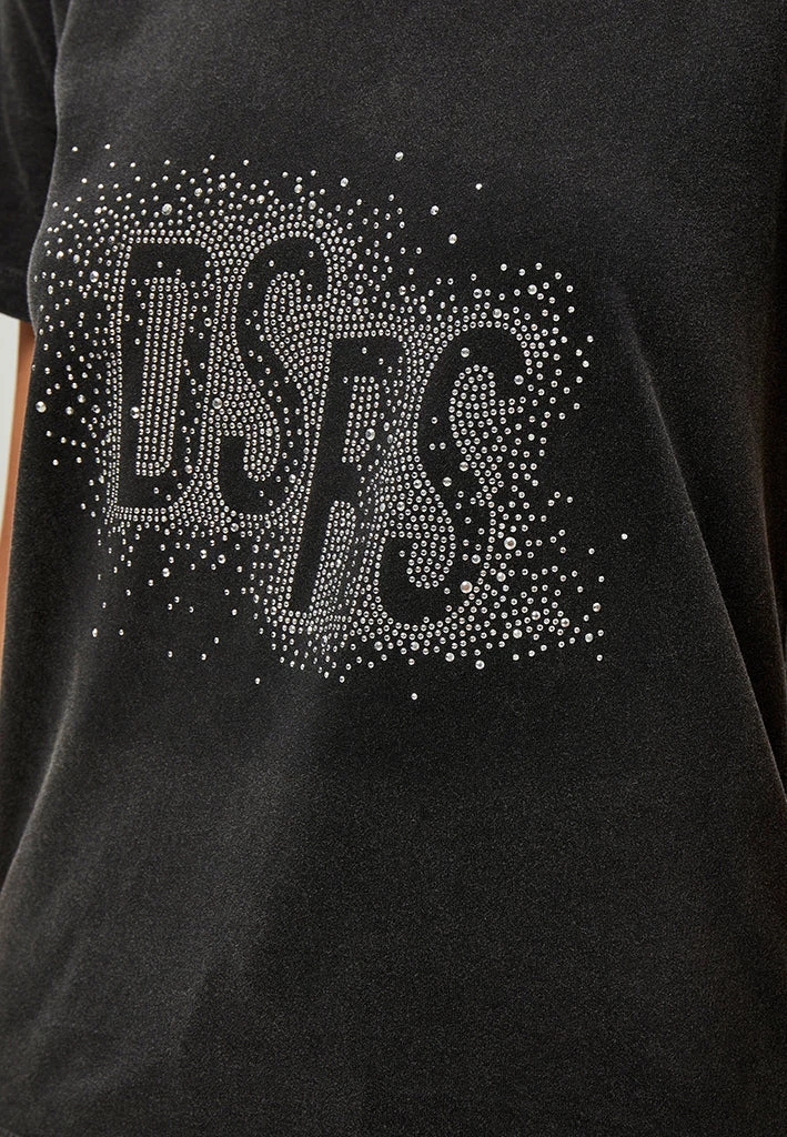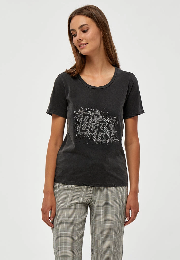 A great essential to have in your everyday wardrobe. The Jolan Tee is black with a scoop neckline and glitter on the chest.