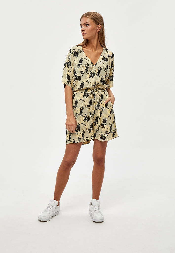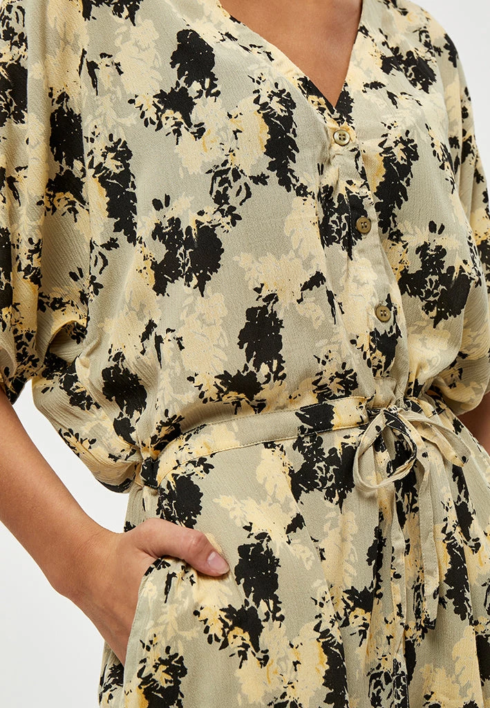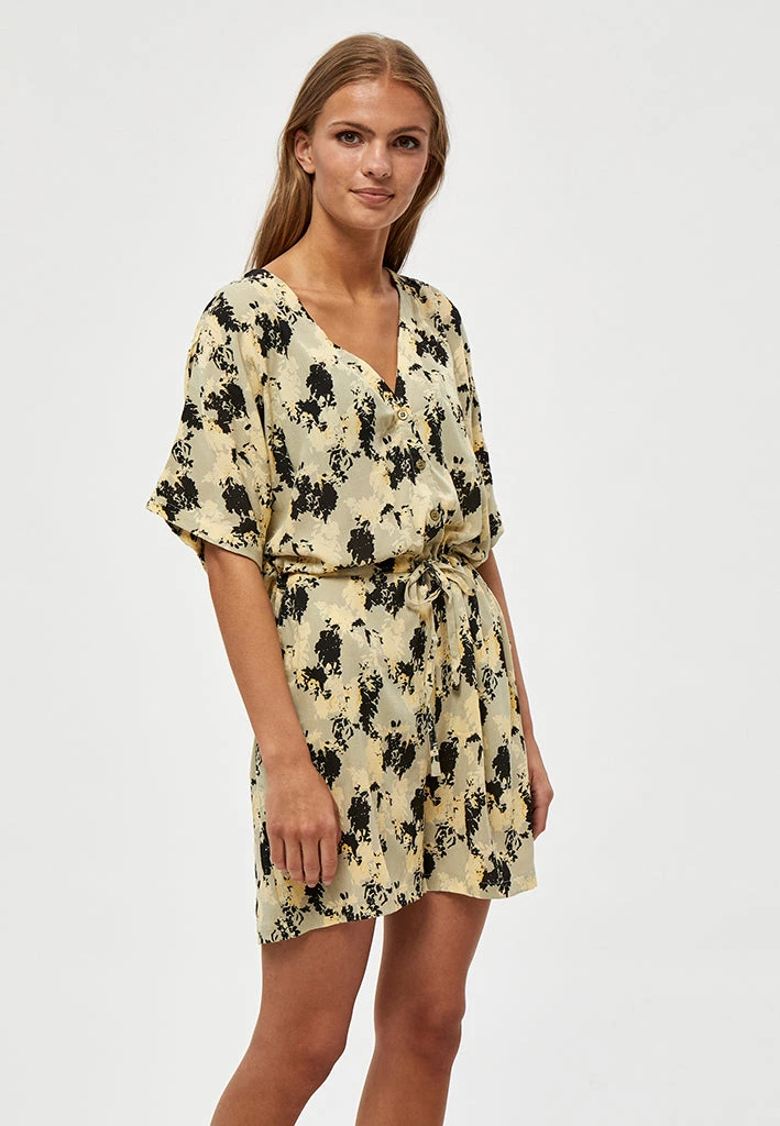 Playsuit in a cool pattern. It has a v-neck, ties at the waist and has buttons down to the waist as well. It is made from 100% sustainable materials. ¨