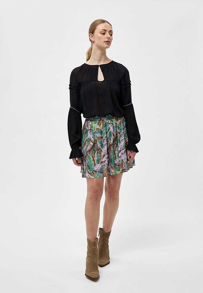 Lovely skirt with beautiful print. The skirt is flowy and has an elastic waist.