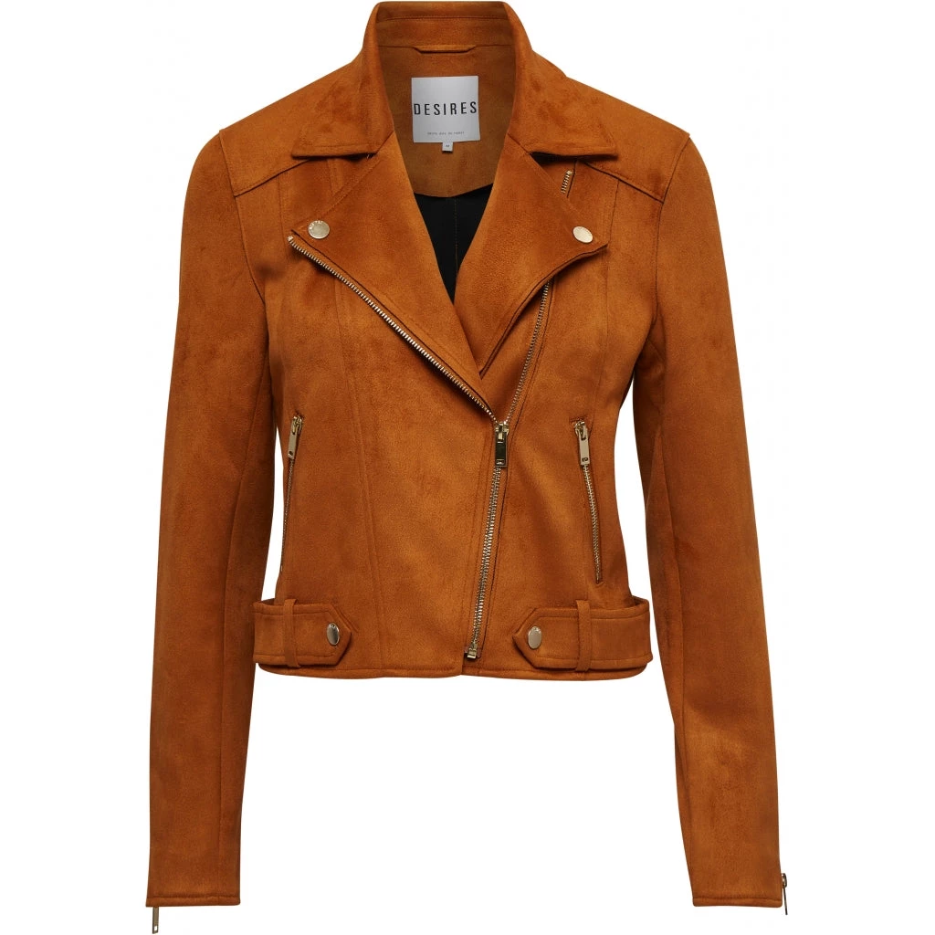 Cool biker jacket with a lot of details. The jacket has an asymmetrical zipper at the front, zippered pockets at the side and sleeves, and collar with push buttons. The material is soft smooth velour, which makes the jacket it’s very own.