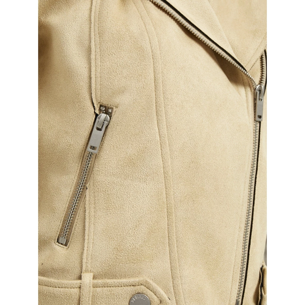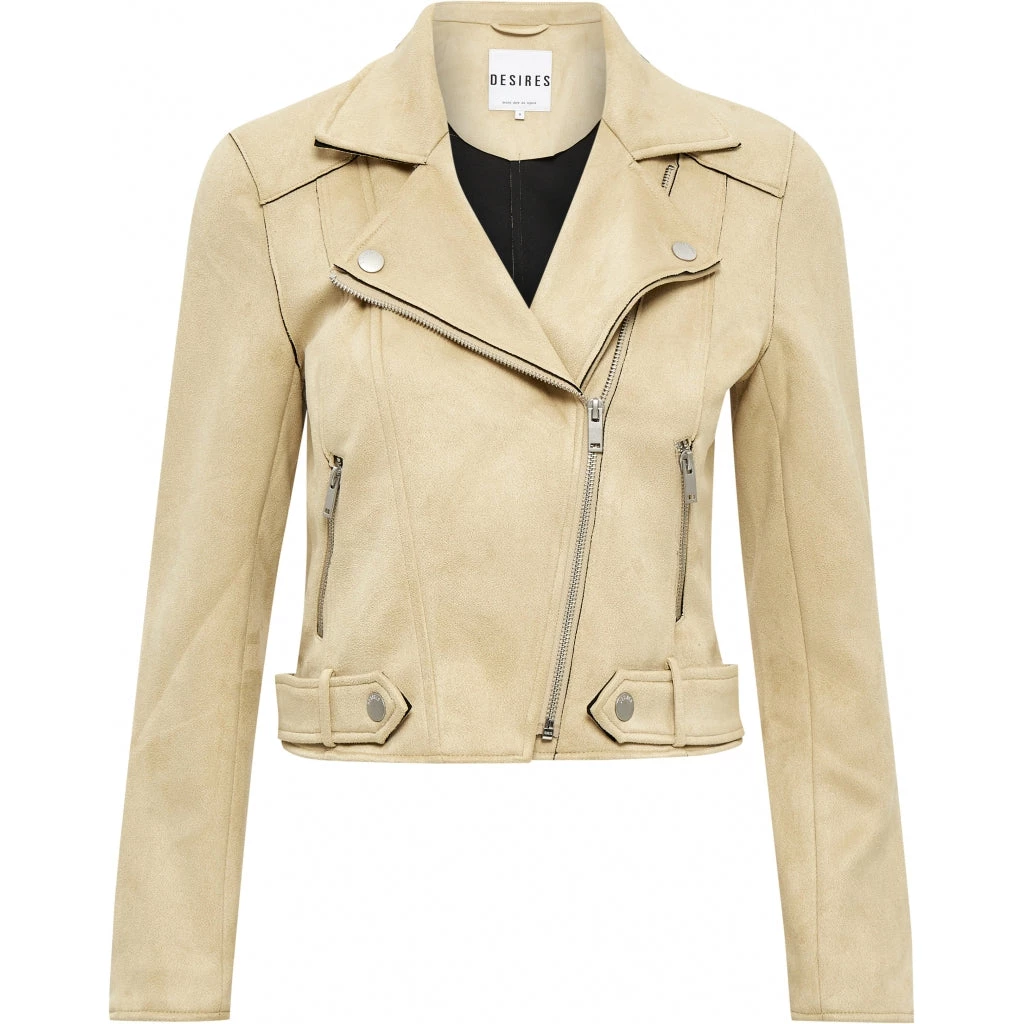 Cool biker jacket with a lot of details. The jacket has an asymmetrical zipper at the front, zippered pockets at the side and sleeves, and collar with push buttons. The material is soft smooth velour, which makes the jacket it’s very own.